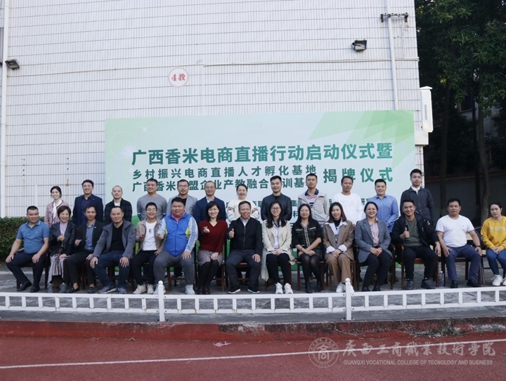 為推進(jìn)學(xué)校產(chǎn)教融合、校企合作水平,有效提升我校電商專業(yè)學(xué)生職業(yè)技能,更好服務(wù)廣西香米聯(lián)盟企業(yè),11月18日下午,由廣西香米產(chǎn)業(yè)研究院聯(lián)合廣西糧食行業(yè)協(xié)會(huì)、廣西香米聯(lián)盟企業(yè)、廣州綠田園農(nóng)業(yè)科技有限責(zé)任公司承辦的廣西香米電商直播行動(dòng)啟動(dòng)儀式暨鄉(xiāng)村振興電商直播人才孵化基地、廣西香米聯(lián)盟企業(yè)產(chǎn)教融合實(shí)訓(xùn)基地揭牌儀式在我校中堯校區(qū)成功舉辦。學(xué)院副院長闕勇平、廣西香米產(chǎn)業(yè)研究院副院長張煌強(qiáng)、廣州綠田園農(nóng)業(yè)科技有限公司副董事長戴春燕、廣西糧食行業(yè)協(xié)會(huì)副秘書長羅桂嬌及十八家廣西香米產(chǎn)業(yè)聯(lián)盟企業(yè)代表參加儀式。