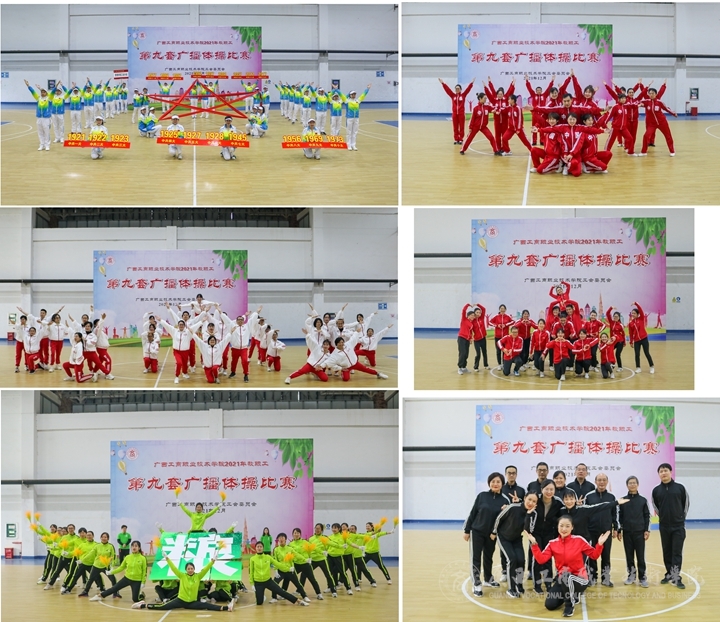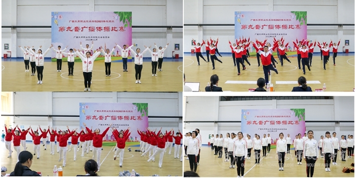 2021年12月21日,學(xué)院2021年教職工第九套廣播體操比賽在文體館二樓舉辦,我院8個(gè)工會(huì)分會(huì)、9個(gè)直屬工會(huì)小組職工代表共16支隊(duì)伍400余人參賽。學(xué)院黨委副書(shū)記、工會(huì)主席蒙啟成出席本次比賽活動(dòng)。本次大賽聘請(qǐng)校外3位專家作為裁判,裁判長(zhǎng)由廣西大學(xué)教授、南寧市體操協(xié)會(huì)副主席,國(guó)家級(jí)裁判鄧艷香擔(dān)任。
