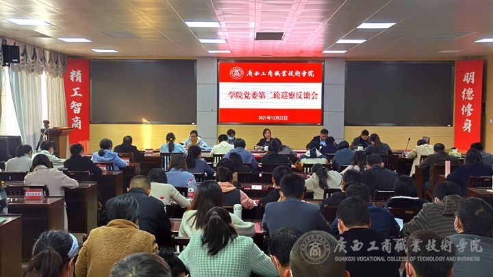 2021年12月22日下午,學院黨委第二輪巡察反饋會在鵬飛校區(qū)2119會議室召開。學院黨委委員、紀委書記、巡察工作領導小組辦公室主任韋云鳳同志出席會議并講話。巡察工作領導小組辦公室成員,巡察組全體成員,被巡察的學生工作部黨支部、財金學院黨總支、原糧油康旅學院/繼續(xù)教育學院黨總支、馬克思主義學院黨支部、后勤管理處黨支部、招生就業(yè)工作處黨支部六個基層黨組織所轄部門的全體人員參加會議。會議由學生工作部黨支部書記林雯同志主持。