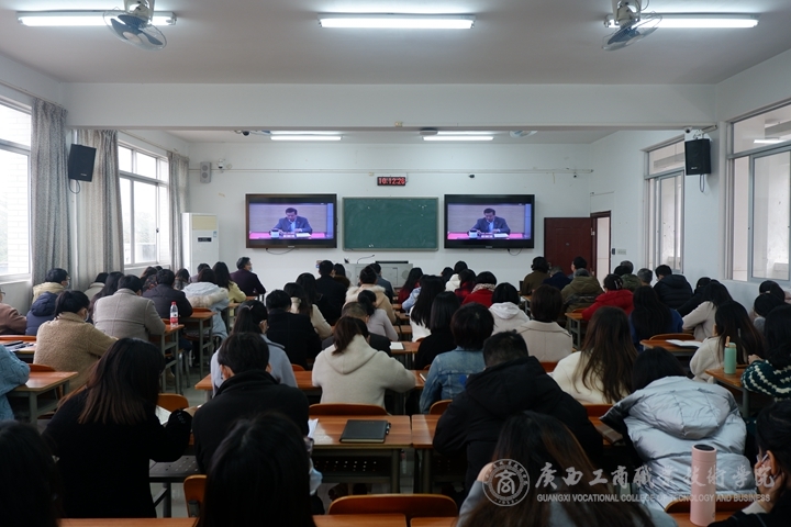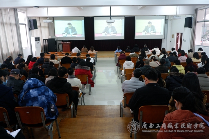 ?1月14日上午,學(xué)院在鵬飛校區(qū)2119會議室組織召開教職工期末大會。全體學(xué)院領(lǐng)導(dǎo)、中層以上干部、教代會代表在主會場參會,其余全體教職工分3個分會場集中線上參會。會議由學(xué)院黨委書記覃武云主持。?