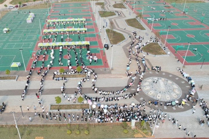 (武鳴校區(qū)有序核酸檢測現場鳥瞰圖? 財金學院供圖)