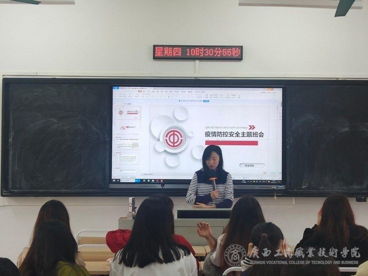 (圖為財(cái)金學(xué)院輔導(dǎo)員楊艷召開(kāi)“雙節(jié)”疫情防控和安全穩(wěn)定主題班會(huì))