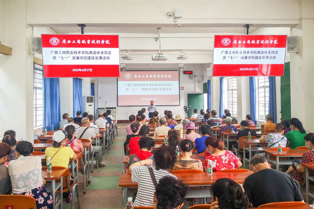 6月27日,學(xué)院在中堯校區(qū)組織離退休老同志開展慶“七一”系列活動(dòng),黨史知識(shí)大家答、學(xué)院紀(jì)委書記韋云鳳給離退休老同志上“清廉學(xué)校建設(shè)”主題黨課、退休老黨員開展“我為黨的二十大建言獻(xiàn)策”座談會(huì),學(xué)院離退休老同志近110人參加活動(dòng)。學(xué)院黨委書記覃武云、院長(zhǎng)李維等領(lǐng)導(dǎo)同志出席活動(dòng),并致以節(jié)日的問候。學(xué)院黨委辦公室、黨委組織部有關(guān)同志參加活動(dòng)。