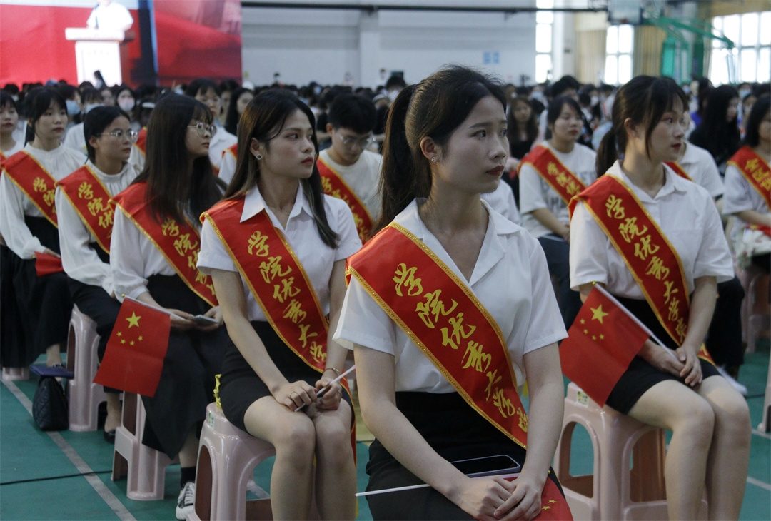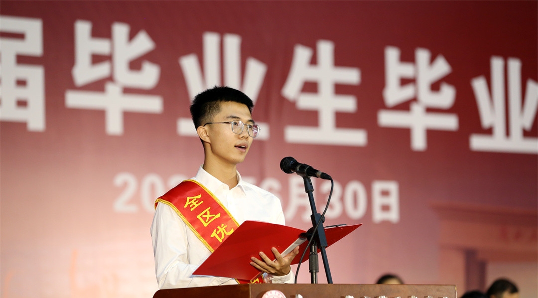 畢業(yè)典禮在莊嚴(yán)激昂的國歌聲中拉開序幕。學(xué)院副院長闕勇平宣讀畢業(yè)生文件,決定對2022屆畢業(yè)生黎美辰等3832位同學(xué)授予中華人民共和國普通高等學(xué)校畢業(yè)證書。獲得自治區(qū)優(yōu)秀畢業(yè)生榮譽(yù)稱號的經(jīng)貿(mào)學(xué)院營銷1905班藍(lán)滿奇同學(xué)代表全體畢業(yè)生發(fā)言。他表示,作為新時(shí)代的新青年,他將勇敢肩負(fù)起時(shí)代賦予的重任,腳踏實(shí)地,努力在實(shí)現(xiàn)中華民族偉大復(fù)興的中國夢的生動實(shí)踐中放飛青春夢想,實(shí)現(xiàn)人生目標(biāo)。謹(jǐn)記校訓(xùn),胸懷理想,以國家富強(qiáng)、人民幸福為己任,投身中國特色社會主義偉大實(shí)踐。