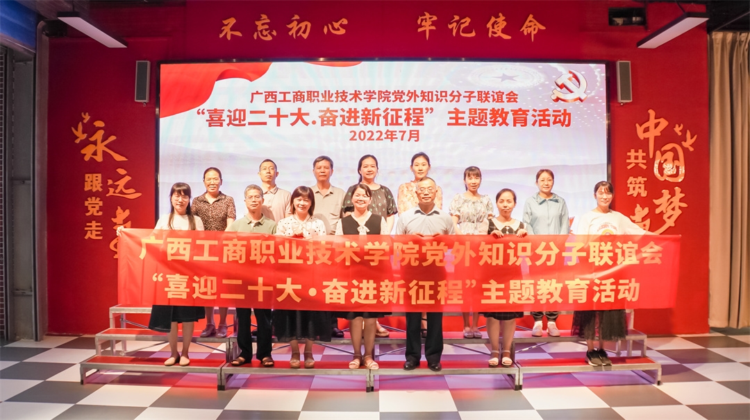 2022年7月6日,廣西工商職業(yè)技術(shù)學(xué)院黨外知識分子聯(lián)誼會(下文簡稱知聯(lián)會)赴南寧經(jīng)開區(qū)兩新領(lǐng)域電影黨校(下文簡稱電影黨校)開展“喜迎二十大·奮進(jìn)新征程”主題教育活動,黨委統(tǒng)戰(zhàn)部負(fù)責(zé)人、學(xué)院知聯(lián)會部分成員和部分黨組織統(tǒng)戰(zhàn)委員參加活動。