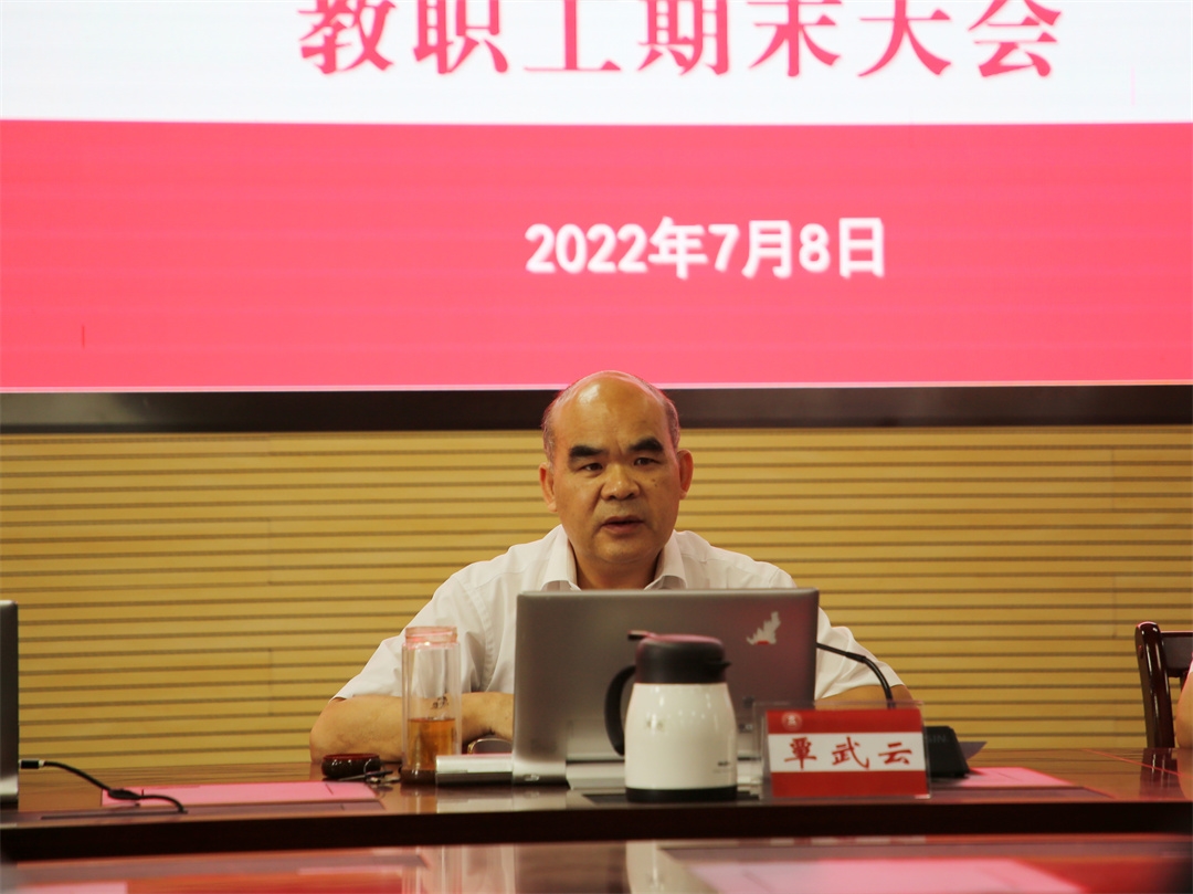 7月8日下午,我院2021-2022學年第二學期教職工期末大會在鵬飛校區(qū)召開。全體學院領導、教職工參加會議。會議由學院黨委書記覃武云主持。
