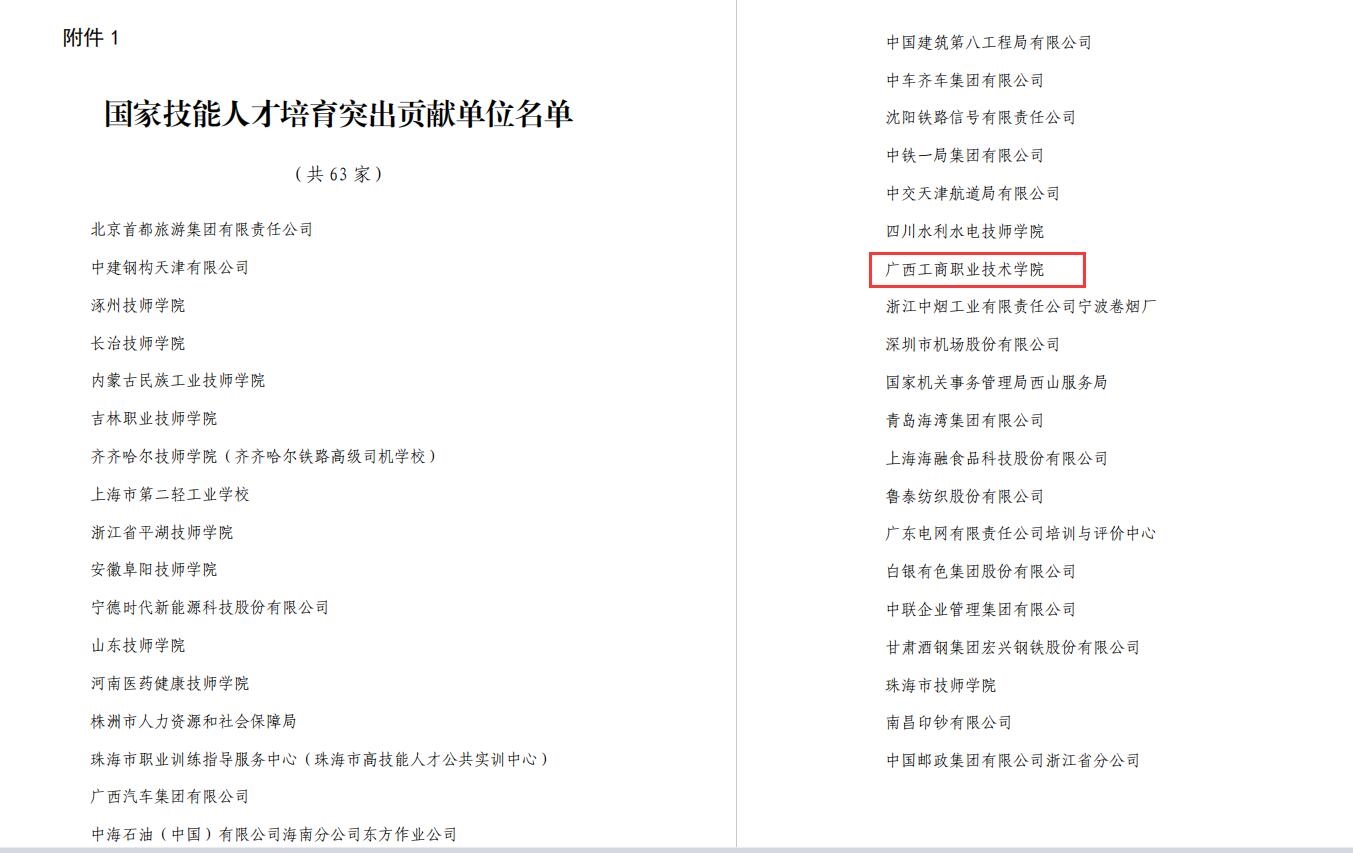 2022年12月28日,人力資源和社會保障部發(fā)布《關(guān)于表揚國家技能人才培育工作突出貢獻單位和個人的通知》,對為國家技能人才培育工作作出突出貢獻的單位和個人給予表揚。我院被評為國家技能人才培育工作突出貢獻單位,是今年全國63家、廣西2家獲此榮譽的單位之一,也是全國糧食和物資儲備系統(tǒng)唯一獲評的單位。