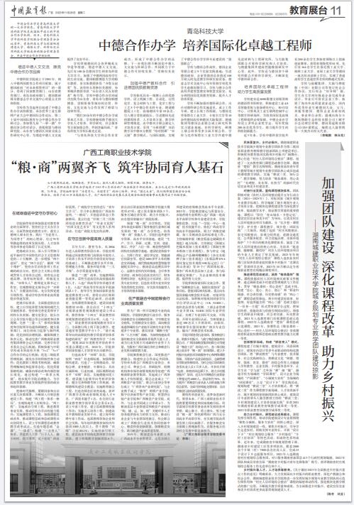 推進(jìn)“三教”改革。實(shí)施教師隊(duì)伍改革,柔性引進(jìn)高層次高技能高職稱(chēng)人才,入選廣西高等學(xué)校卓越學(xué)者1名,入選廣西高等學(xué)校高水平創(chuàng)新團(tuán)隊(duì)1個(gè),指導(dǎo)學(xué)生參加國(guó)家職業(yè)技能競(jìng)賽獲獎(jiǎng)11項(xiàng),獲得自治區(qū)級(jí)職業(yè)技能競(jìng)賽一等獎(jiǎng)近40項(xiàng)。啟動(dòng)教材、在線課程資源建設(shè),建設(shè)國(guó)家規(guī)劃教材10部,獲自治區(qū)“十四五”首批職業(yè)教育規(guī)劃教材建設(shè)立項(xiàng)4項(xiàng),推薦參加“十四五”職業(yè)教育國(guó)家規(guī)劃教材建設(shè)項(xiàng)目4項(xiàng),入選“十三五”職業(yè)教育國(guó)家規(guī)劃教材書(shū)目2門(mén)。全面推行線上線下混合教學(xué),建設(shè)超星智慧教學(xué)平臺(tái)1個(gè),“基于成果導(dǎo)向的高職院校教學(xué)質(zhì)量評(píng)價(jià)體系構(gòu)建的研究”獲廣西教育科學(xué)“十四五”規(guī)劃2022年度教育評(píng)價(jià)改革專(zhuān)項(xiàng)重點(diǎn)課題立項(xiàng)。2022年,學(xué)院獲評(píng)國(guó)家技能人才培育突出貢獻(xiàn)單位。