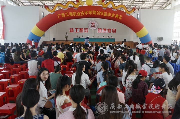 2015年6月27日下午15點(diǎn),廣西工商職業(yè)技術(shù)學(xué)院2015屆畢業(yè)生典禮在我院校本部文體館二樓隆重舉行。學(xué)院領(lǐng)導(dǎo)班子全體成員及學(xué)院各部門主要負(fù)責(zé)人出席,2015屆各班畢業(yè)生及班主任參加。畢業(yè)典禮由李仕欽副院長主持。