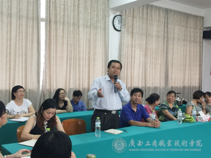 最后,教務(wù)科研處韋勝?gòu)?qiáng)處長(zhǎng)向與會(huì)外聘教師介紹了學(xué)院近年來招生工作、師資隊(duì)伍建設(shè)工作的發(fā)展情況,并就外聘教師提出的意見與建議進(jìn)行了一一回應(yīng)。韋勝?gòu)?qiáng)處長(zhǎng)指出,作為學(xué)院師資隊(duì)伍的組成部分,學(xué)院將把外聘教師管理納入師資隊(duì)伍建設(shè)中,統(tǒng)一規(guī)劃和管理,今后將從五個(gè)方面加強(qiáng)外聘教師的管理工作:一是提高外聘教師待遇;二是建立對(duì)外聘教師的獎(jiǎng)勵(lì)機(jī)制,如在即將組織實(shí)施的青年教師“優(yōu)質(zhì)課”評(píng)定活動(dòng)中,把符合條件的外聘教師列入?yún)⒃u(píng)對(duì)象;三是保證給予外聘教師必要的教學(xué)條件,如解決帶學(xué)生外出參觀學(xué)習(xí)的用車問題;四是加大外聘教師的培訓(xùn),把外聘教師培訓(xùn)納入到學(xué)院教師培訓(xùn)工作中,定期開展外聘教師交流活動(dòng),與學(xué)校教師一起共同成長(zhǎng)、共同進(jìn)步;五是提供外聘教師發(fā)展的平臺(tái),鼓勵(lì)外聘教師參加各級(jí)各類教學(xué)技能比賽,如微課比賽、說課比賽、教育技術(shù)比賽等等。