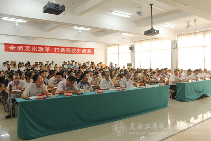報告最后,覃書記簡要部署了暑假工作安排及下學期工作計劃。覃書記指出,下學期學院主要著力做好以下幾方面的工作,一是深入開展“三嚴三實”專題學習研討。二是加強黨風廉政建設和反腐倡廉建設。 三是加強以“提高教師素質”為重點的教學水平升級。四是加強以“強化干部執(zhí)行力”為重點的管理能力升級。五是加強以“教育信息化”為重點的服務環(huán)境升級。