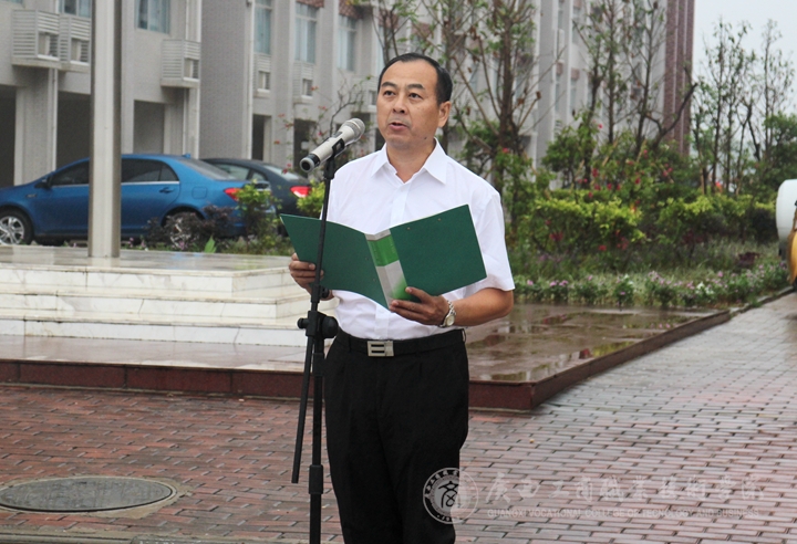 2015年8月31日早上,伴著蒙蒙細雨,我院2015-2016學年秋季學期首次升旗儀式在校本部田徑運動場隆重舉行。學院領導,各部門、各單位中層以上領導、各系年級輔導員及2014 級全體學生冒雨參加了升旗儀式。