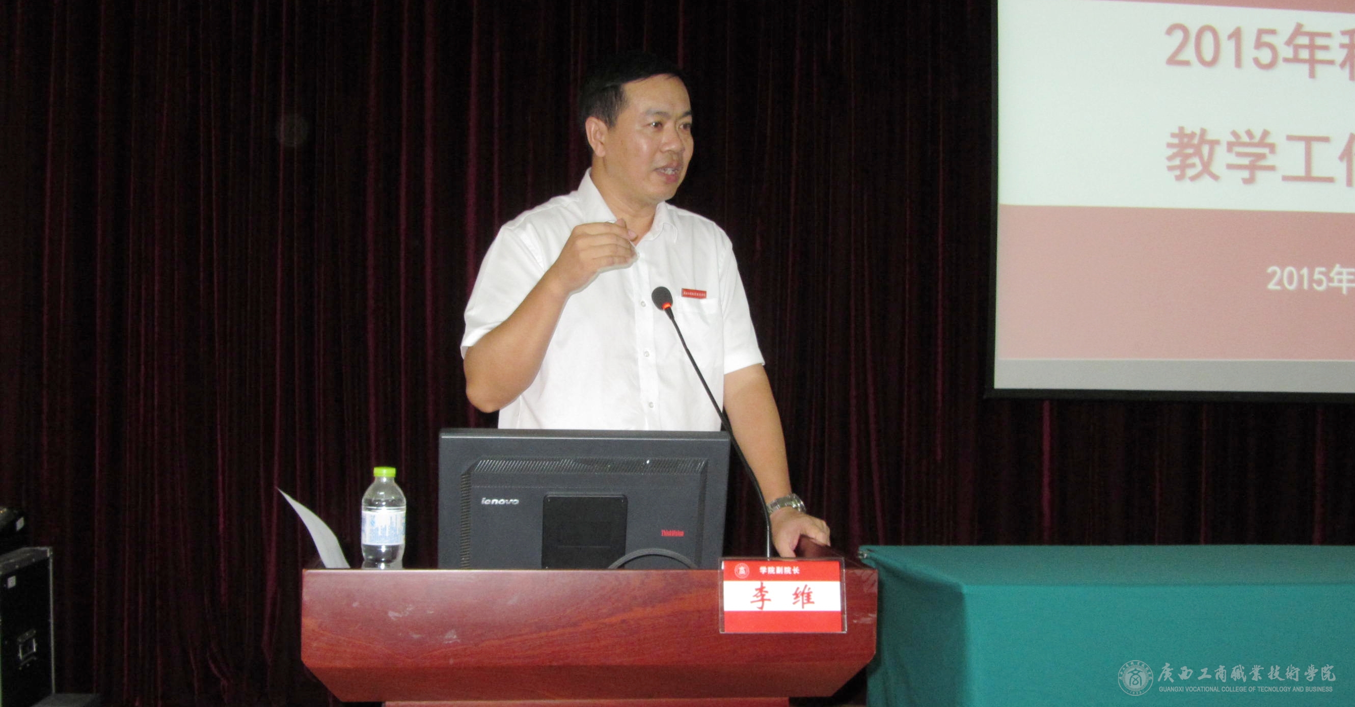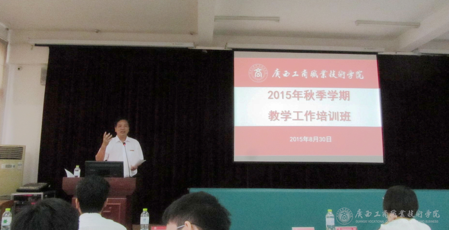 2015年8月30日下午,我院在校本部教學(xué)樓2145報(bào)告廳舉辦2015年秋季培訓(xùn)周教學(xué)工作培訓(xùn)班。學(xué)院領(lǐng)導(dǎo)李維副院長(zhǎng),現(xiàn)教中心、督導(dǎo)室領(lǐng)導(dǎo),各系(部)主任、教學(xué)副主任,教研室正副主任、專業(yè)帶頭人、課程負(fù)責(zé)人、教學(xué)秘書及教務(wù)科研處全體人員參加了培訓(xùn)班。培訓(xùn)班由教務(wù)科研處韋勝?gòu)?qiáng)處長(zhǎng)主持。