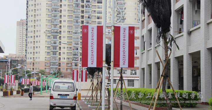 大力營造紀念活動良好的校園氛圍。我院利用宣傳櫥窗、校園燈桿旗、大型LED顯示屏、視頻系統(tǒng)、廣播等宣傳平臺廣泛開展紀念抗戰(zhàn)勝利70周年宣傳活動,使生活學(xué)習(xí)工作在校園內(nèi)的廣大師生,不管在校園那個地方都可感受到紀念抗戰(zhàn)勝利濃厚氛圍。