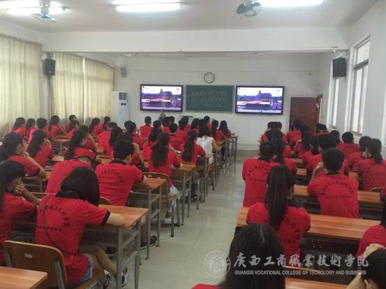 今天,是中國人民抗日戰(zhàn)爭暨世界反法西斯戰(zhàn)爭勝利70周年紀(jì)念日。這是正義戰(zhàn)勝邪惡、光明戰(zhàn)勝黑暗、進(jìn)步戰(zhàn)勝反動的偉大勝利,是中國人民和全世界一切愛好和平的國家和人民的盛大節(jié)日。為了紀(jì)念和慶祝這一偉大節(jié)日,9月3日早上10時,由我院學(xué)生委員會組織,學(xué)院老師、院級學(xué)生組織代表、各系學(xué)生會主要干部參與,在2207教室觀看“紀(jì)念中國人民抗日戰(zhàn)爭暨世界反法西斯戰(zhàn)爭勝利70周年”閱兵儀式。