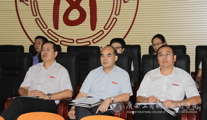 2015年9月14日下午,學院院長陳杰教授的第一堂思想政治理論課暨院長公開課在2214視頻會議室進行。學院黨委覃武云書記、蒙啟成副書記、李維副院長、韋勝強處長、各系部領導、各專業(yè)負責人以及社科部全體教師和營策1502、物流1503、工商1507班全體同學聆聽了本次公開課。