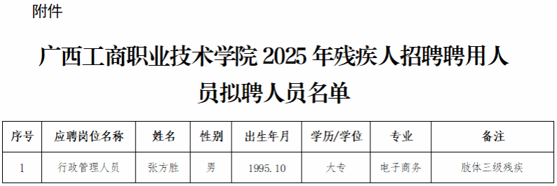 附件:廣西工商職業(yè)技術(shù)學院2025年殘疾人招聘聘用人員擬聘人員名單
