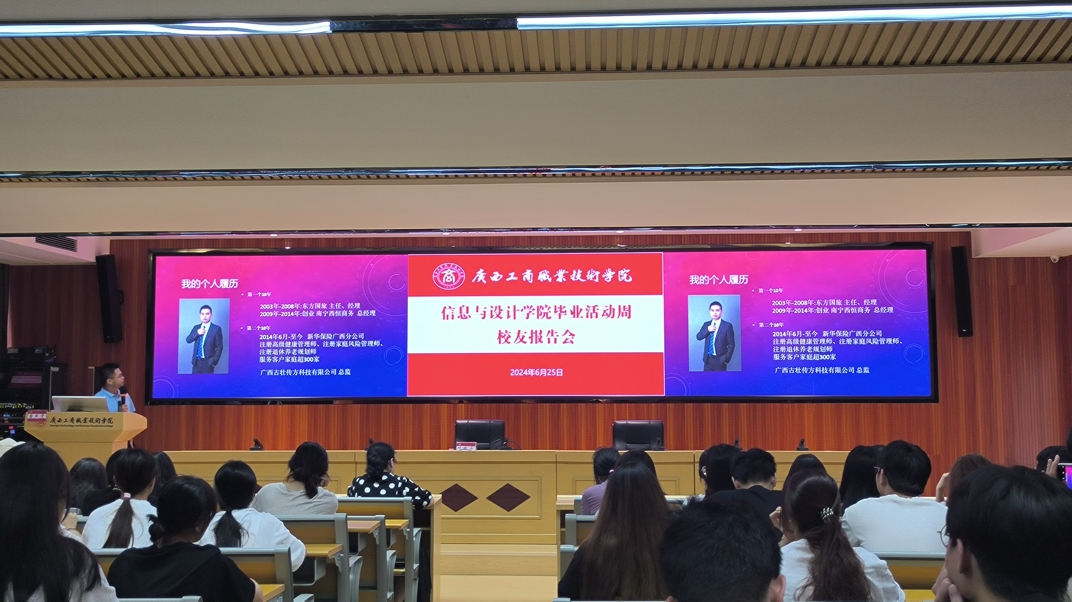 為增強(qiáng)學(xué)院與校友之間的溝通交流,學(xué)習(xí)借鑒優(yōu)秀校友的經(jīng)驗(yàn),引導(dǎo)在校學(xué)生樹立正確的職業(yè)認(rèn)知,激勵(lì)廣大學(xué)生成長(zhǎng)成才,信息與設(shè)計(jì)學(xué)院于2024年6月25日在鵬飛校區(qū)2145會(huì)議室舉辦信息與設(shè)計(jì)學(xué)院畢業(yè)活動(dòng)周校友報(bào)告會(huì)。報(bào)告會(huì)由我院教學(xué)副院長(zhǎng)唐燕雯主持,會(huì)議邀請(qǐng)微機(jī)0035班葉統(tǒng)樂(lè)校友回校做報(bào)告,信息與設(shè)計(jì)學(xué)院師生220多人到會(huì)聆聽。