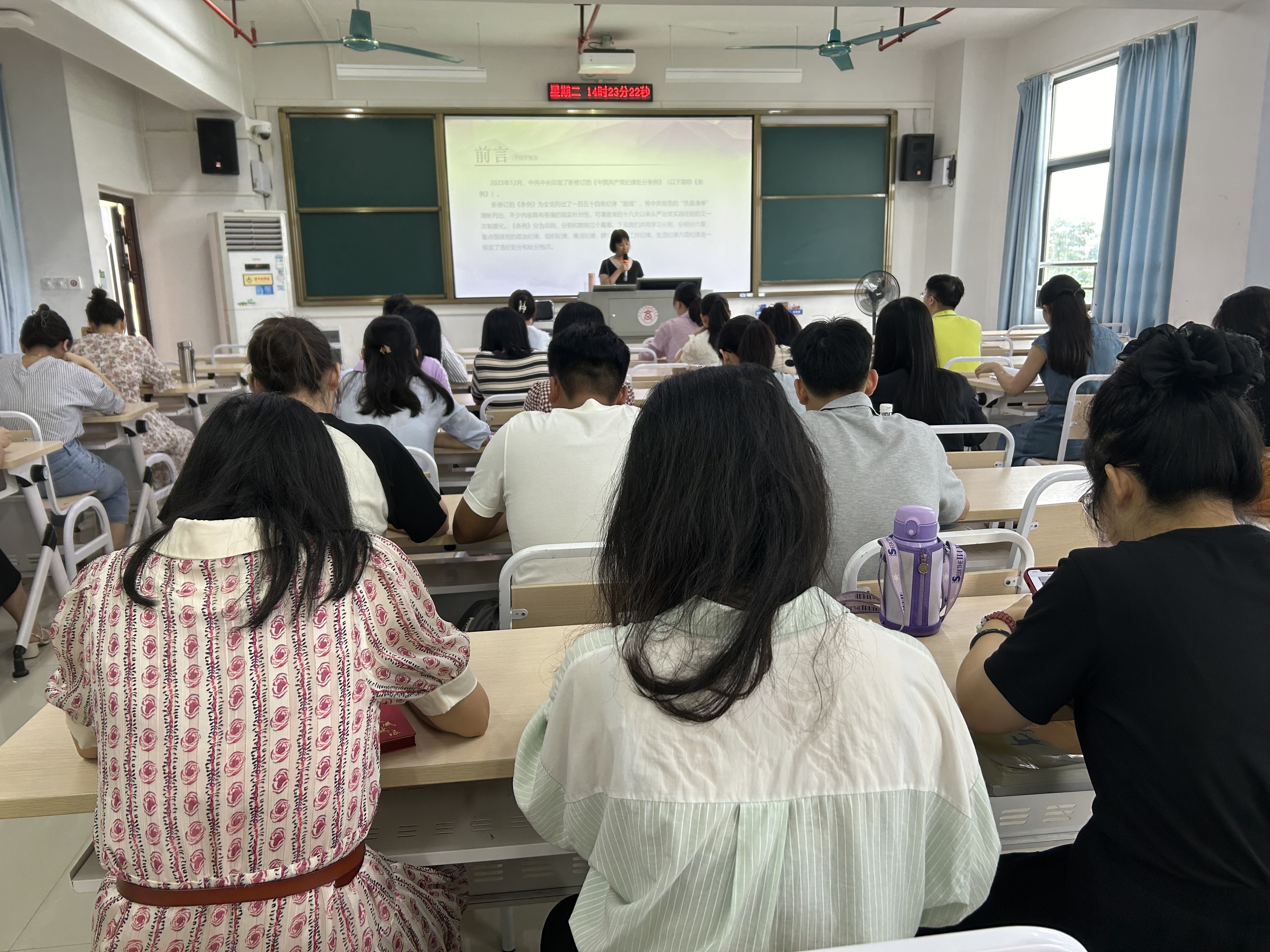 圖二:教師黨員認(rèn)真聆聽紀(jì)律黨課