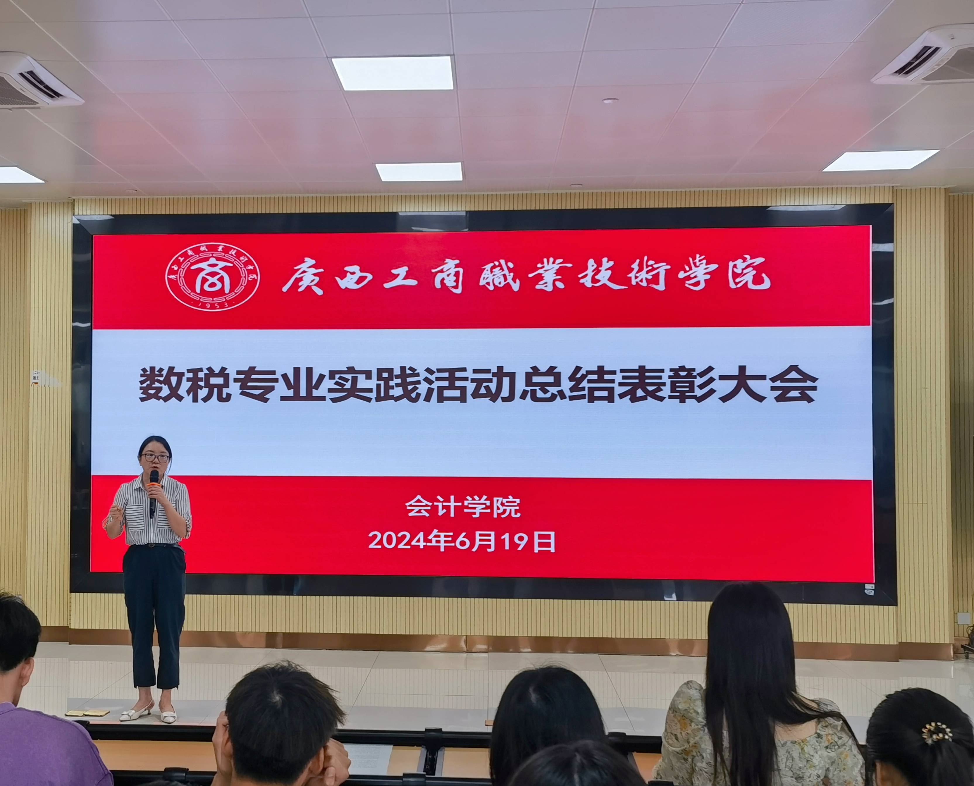 會(huì)計(jì)學(xué)院2023-2024學(xué)年第二學(xué)期財(cái)稅大數(shù)據(jù)應(yīng)用專(zhuān)業(yè)實(shí)踐活動(dòng)已順利告一段落,為總結(jié)經(jīng)驗(yàn)以及表彰先進(jìn),樹(shù)立楷模,讓同學(xué)們更好的領(lǐng)會(huì)此次專(zhuān)業(yè)實(shí)踐活動(dòng)的重要意義,2024年6月19日,會(huì)計(jì)學(xué)院在武鳴校區(qū)A3-101階梯教室召開(kāi)實(shí)踐活動(dòng)總結(jié)表彰大會(huì)。此次會(huì)議由黃穎老師主持,與會(huì)人員有會(huì)計(jì)學(xué)院教學(xué)副院長(zhǎng)譚玉娥、教務(wù)科科長(zhǎng)梁亞兵、教學(xué)秘書(shū)梁月華以及2022級(jí)財(cái)稅大數(shù)據(jù)應(yīng)用專(zhuān)業(yè)全體在校學(xué)生。