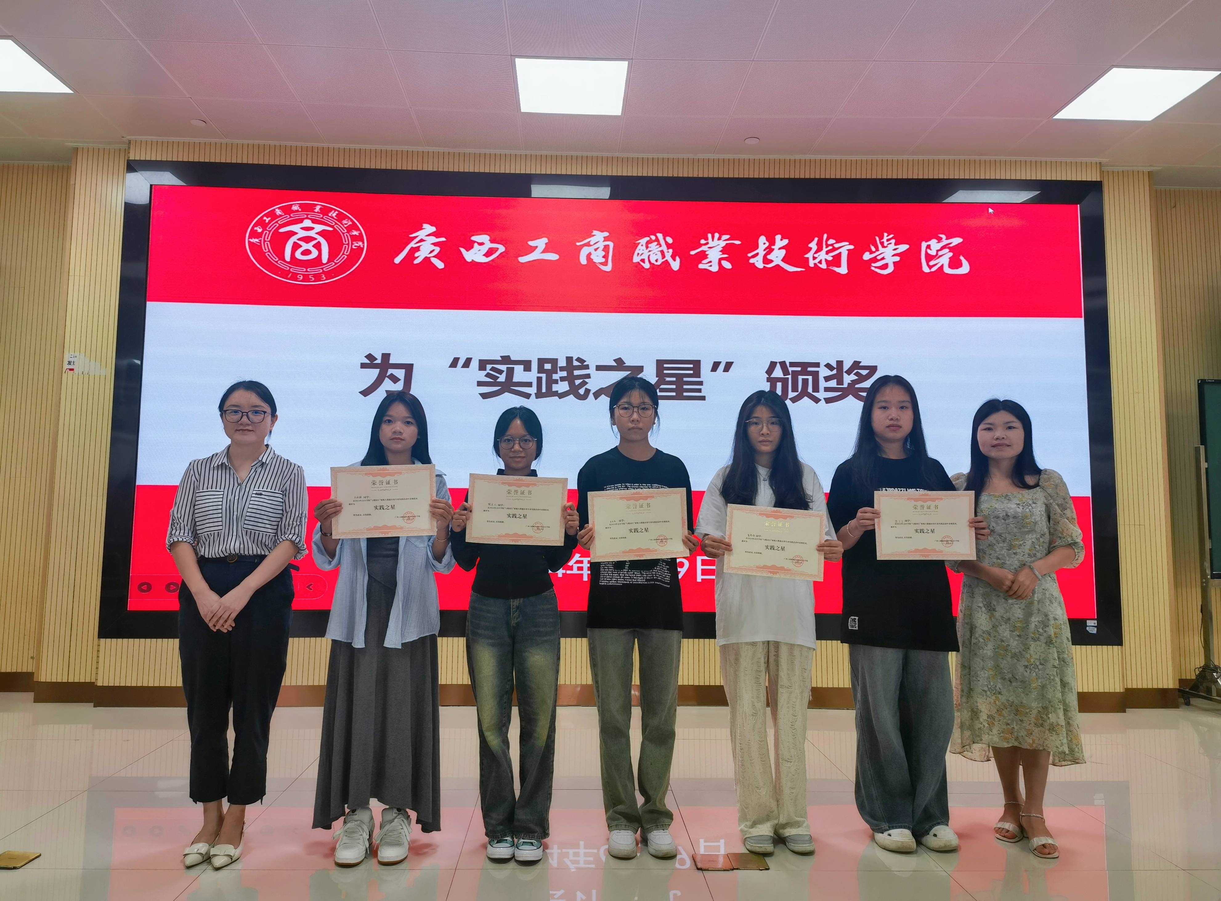 本次總結(jié)表彰大會(huì)共有四項(xiàng)議程:首先,由黃穎老師為大家播放稅局實(shí)踐活動(dòng)回顧視頻,重溫同學(xué)們開(kāi)展志愿服務(wù)活動(dòng)的難忘瞬間,總結(jié)本次專(zhuān)業(yè)實(shí)踐活動(dòng)累計(jì)參與學(xué)生98人,累計(jì)志愿者服務(wù)時(shí)長(zhǎng)為1470個(gè),累計(jì)服務(wù)3868家企業(yè)。其次,由副院長(zhǎng)譚玉娥為全體同學(xué)做總結(jié)發(fā)言,譚玉娥高度認(rèn)可同學(xué)們?cè)诙惥謱?shí)踐活動(dòng)中的優(yōu)異表現(xiàn),同學(xué)們的積極表現(xiàn)也得到納稅人以及稅務(wù)局工作人員的一致認(rèn)可和好評(píng),同學(xué)們圓滿(mǎn)地完成了此次專(zhuān)業(yè)實(shí)踐任務(wù);同時(shí)譚玉娥副院長(zhǎng)鼓勵(lì)同學(xué)們?cè)俳釉賲?、在校外?shí)習(xí)即將拉開(kāi)序幕之際充分利用專(zhuān)業(yè)所學(xué)找準(zhǔn)就業(yè)方向,在今后的生活和學(xué)習(xí)中不斷完善自我。隨后,由譚玉娥副院長(zhǎng)與梁亞兵科長(zhǎng)為實(shí)踐活動(dòng)中表現(xiàn)優(yōu)異的12位同學(xué)頒發(fā)“實(shí)踐之星”榮譽(yù)證書(shū)并合影留念;最后,由獲獎(jiǎng)學(xué)生代表數(shù)稅2201班陳蘭蘭同學(xué)發(fā)表感言。