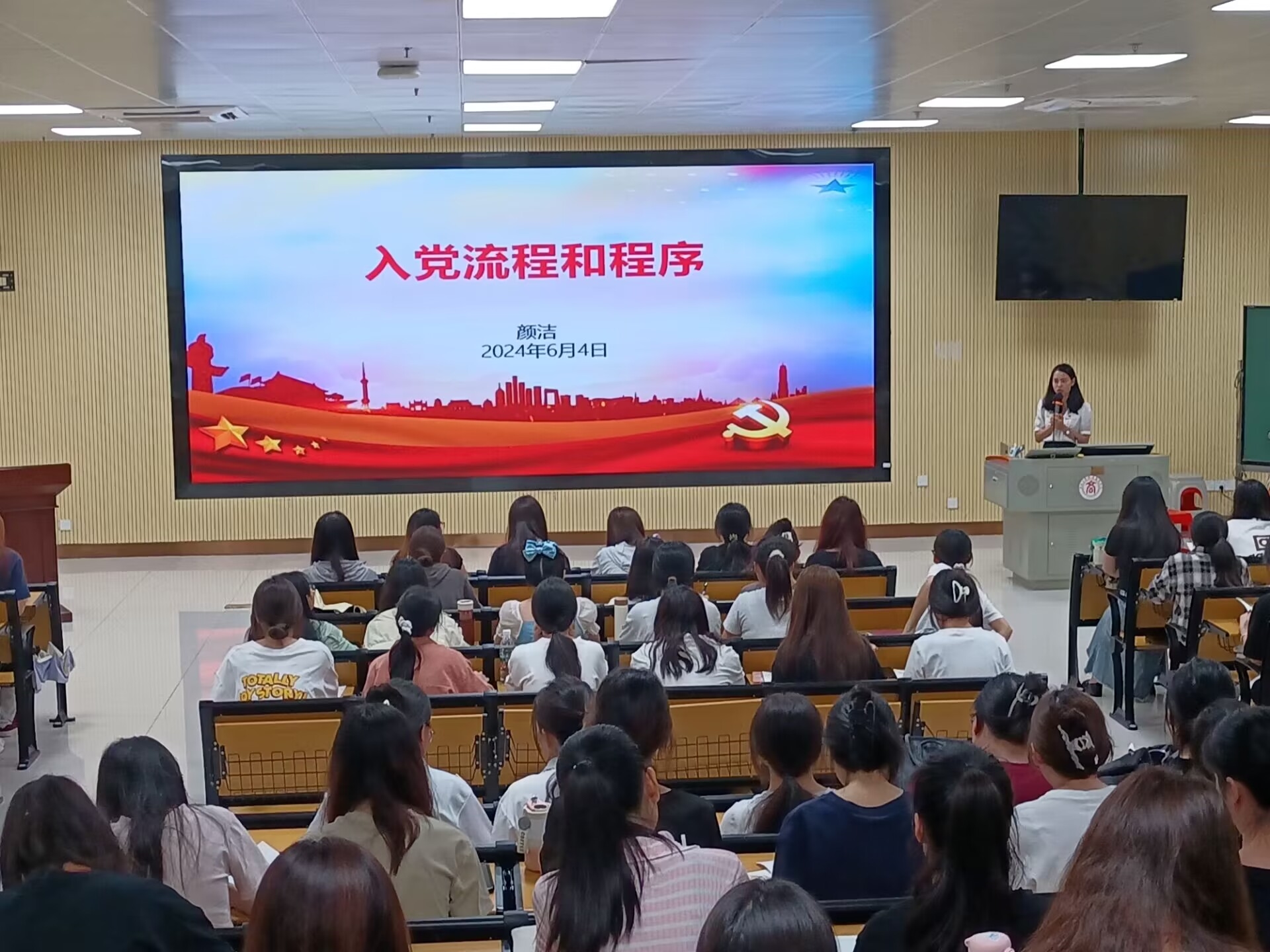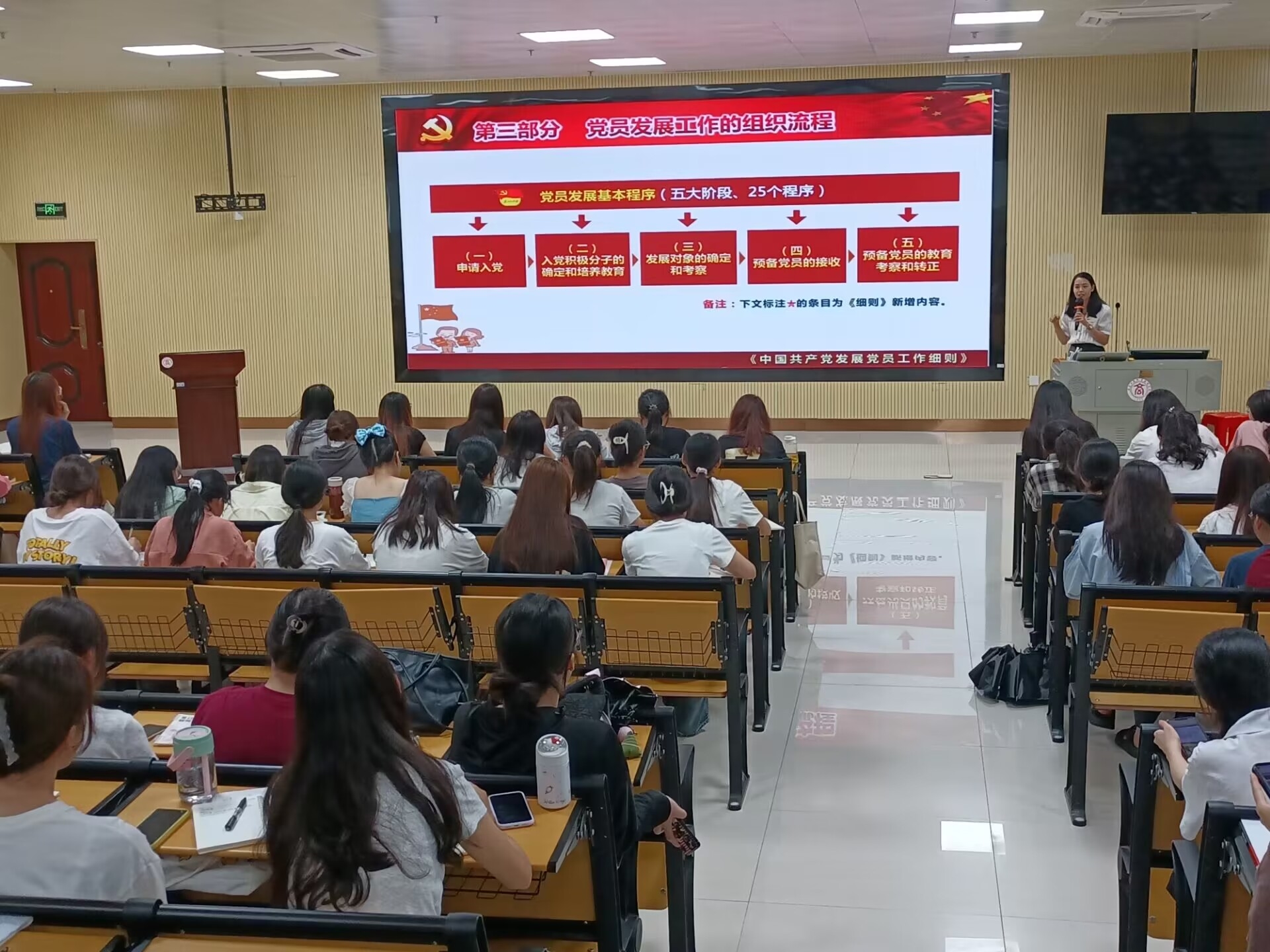 發(fā)展黨員工作是黨建設中一項經常性重要工作,為了使學員清楚入黨流程及程序,會計學院分黨校于6月4日中午12:10分在A2-101教室召開入黨積極分子培訓班第九次黨課活動,本次課程由會計學院顏潔老師主講。