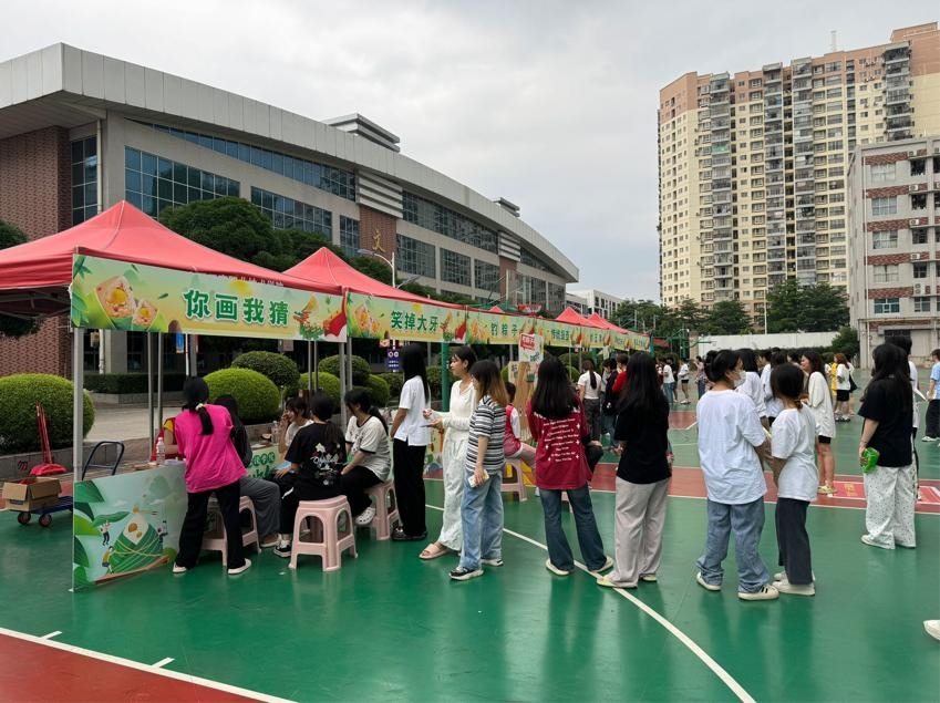 游園會(huì)上,傳統(tǒng)投壺游戲吸引了眾多師生的目光,投壺作為古代一種高雅的投擲游戲,不僅考驗(yàn)技巧,更體現(xiàn)了傳統(tǒng)文化的魅力;旱地龍舟比賽講究配合,同學(xué)們齊心協(xié)力,將現(xiàn)場(chǎng)氣氛推向了高潮;射五毒游戲射擊懸掛著“五毒”圖案的靶子,寓意驅(qū)除瘟疫、祈求健康。此外還有充滿趣味性的釣粽子游戲、考驗(yàn)技巧的“笑掉大牙”游戲和考驗(yàn)?zāi)跖c創(chuàng)意的“你畫我猜”活動(dòng)。
