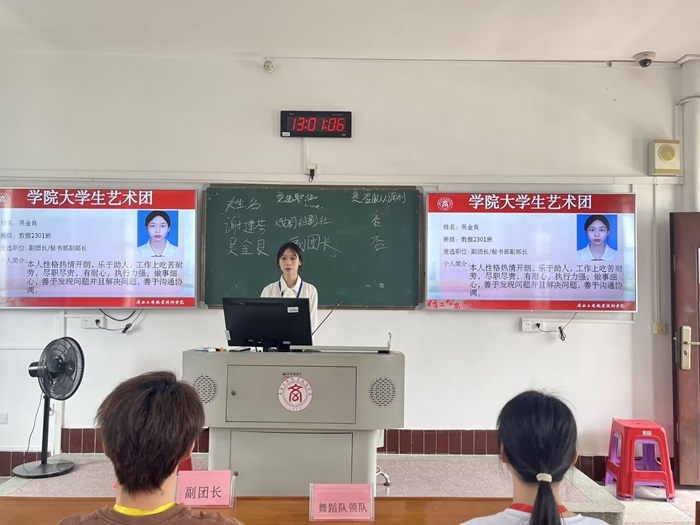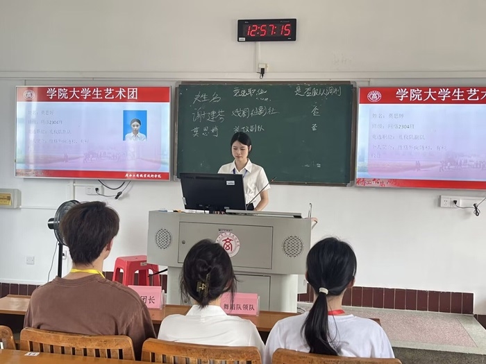 為了促進(jìn)學(xué)院大學(xué)生藝術(shù)團(tuán)的發(fā)展,進(jìn)一步增強(qiáng)社團(tuán)的集體凝聚力。學(xué)院大學(xué)生藝術(shù)團(tuán)于2024年5月23日下午,分別在中堯、鵬飛、武鳴三個(gè)校區(qū)教學(xué)樓開展23級(jí)干事第三次競(jìng)選骨干面試。參加本次面試的有曾蘊(yùn)怡老師、陶曉斌老師、藝術(shù)團(tuán)22級(jí)骨干和23級(jí)干事以及社團(tuán)管理中心的鐘華英同學(xué),本次面試由學(xué)院大學(xué)生藝術(shù)團(tuán)副團(tuán)長(zhǎng)黃海燕主持。