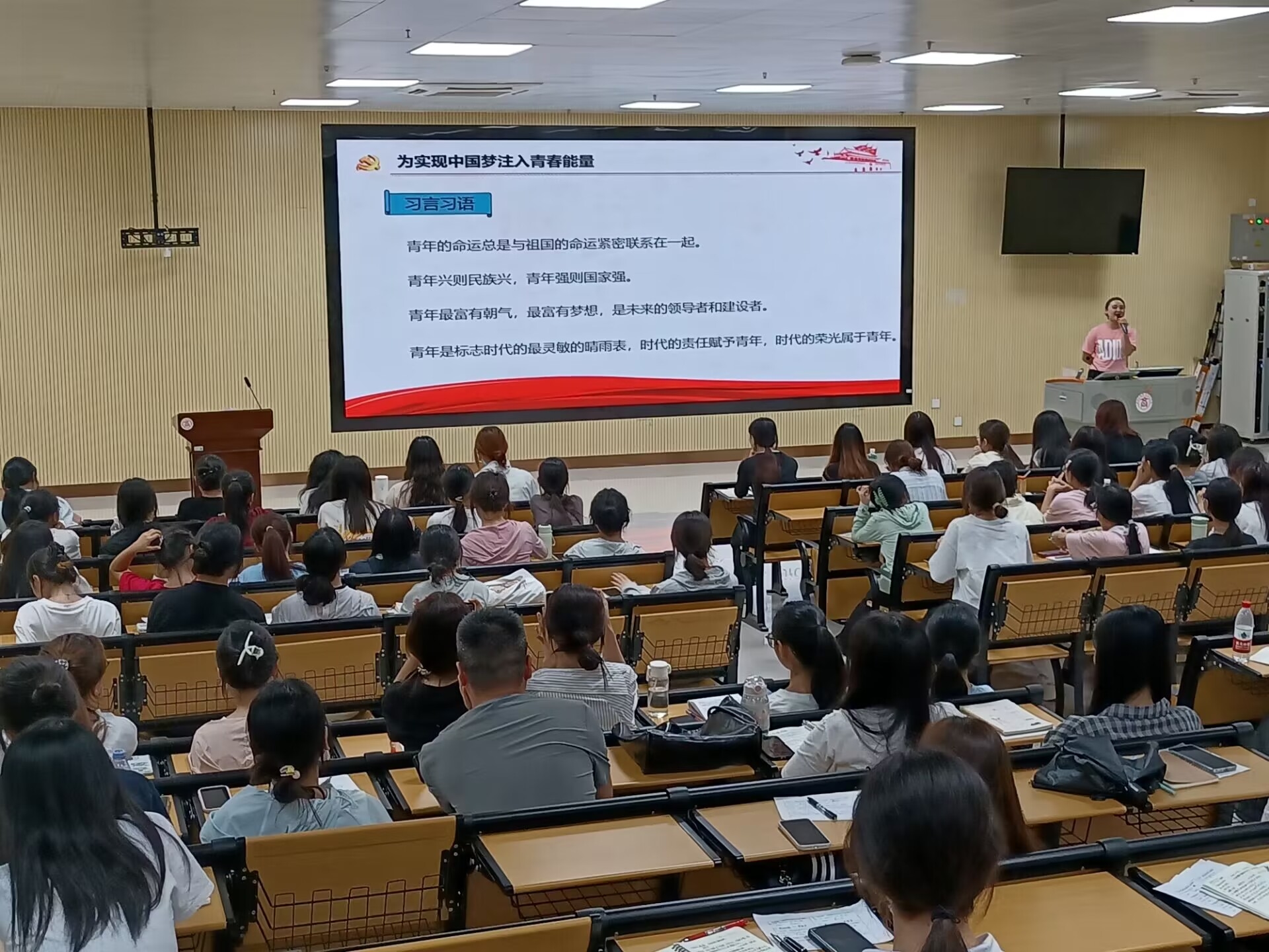 在這個充滿機遇與挑戰(zhàn)的時代,我們青年一代肩負(fù)著國家繁榮昌盛和民族復(fù)興的重任,我們每個人都可以在實現(xiàn)中華民族偉大復(fù)興的同時把“個人夢”融入到“中國夢”中去。此次黨課中,劉倩老師通過講解現(xiàn)代青年如何堅定理想信念、怎樣將個人理想和社會理想有機結(jié)合及觀看三個正能量影片,讓學(xué)員們更加明確今后的奮斗目標(biāo),不斷增強社會責(zé)任感和使命感,以積極向上的精神投入祖國的建設(shè)中,為實現(xiàn)中國夢注入青春能量。
