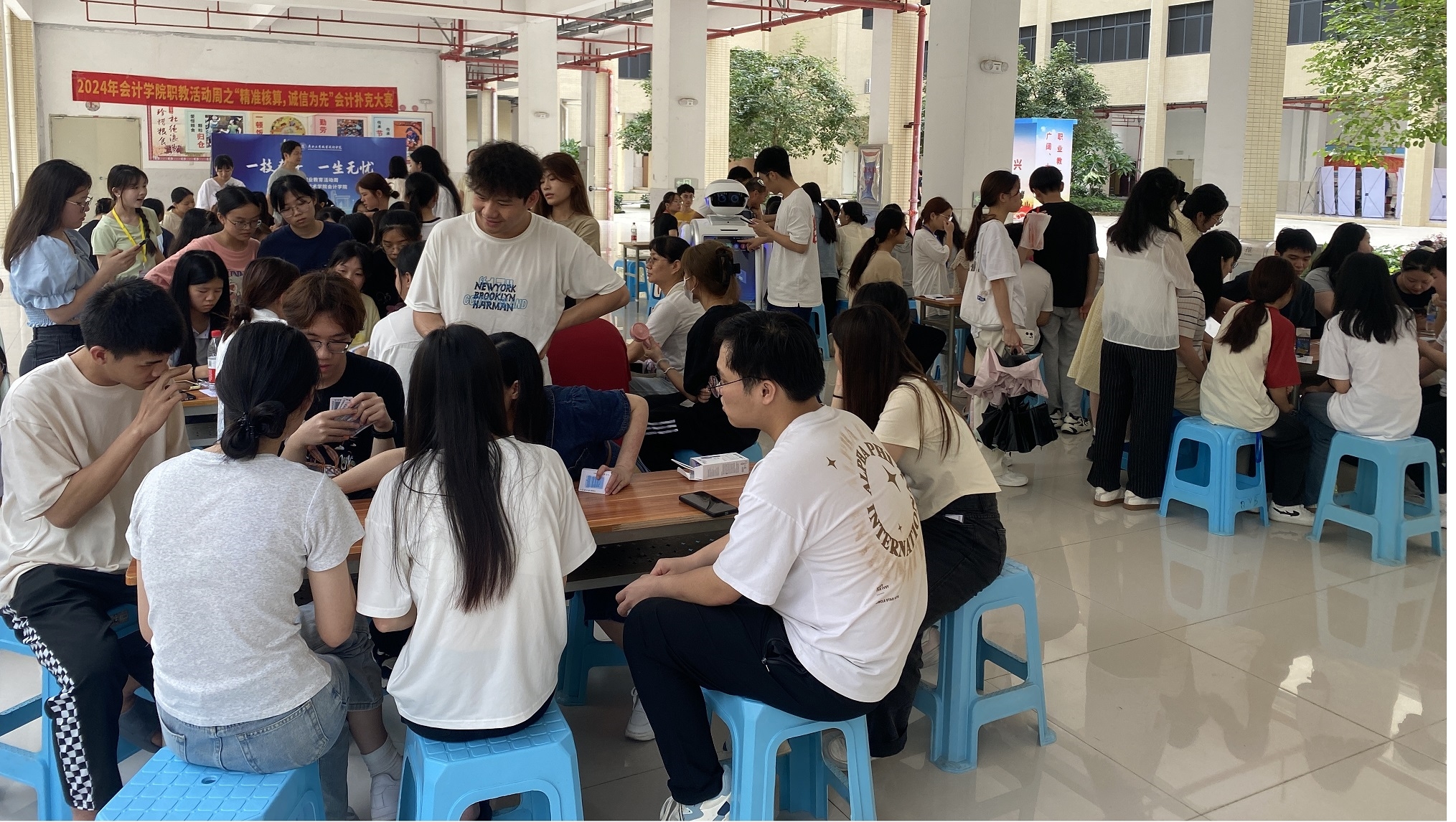 活動(dòng)周中最引人注目的環(huán)節(jié)莫過于與智慧稅務(wù)實(shí)訓(xùn)中心的智能機(jī)器人進(jìn)行互動(dòng)。這款機(jī)器人內(nèi)含會(huì)計(jì)知識(shí)問答功能,通過大屏顯示與智能語音交互技術(shù)自然迅速解答疑問。它借助數(shù)字化教學(xué)環(huán)境,直觀展示會(huì)計(jì)知識(shí),引導(dǎo)學(xué)生創(chuàng)新思維和實(shí)踐。同學(xué)們通過模擬稅務(wù)場(chǎng)景,提升實(shí)操能力,深入理解稅務(wù)工作。????此外,同學(xué)們親身感受了人工智能在職業(yè)教育中的應(yīng)用,體驗(yàn)到科技帶來的便捷和高效,對(duì)未來職場(chǎng)充滿期待。這一創(chuàng)新教學(xué)方式得到了學(xué)生的高度認(rèn)可,認(rèn)為它極大地深化了稅務(wù)實(shí)操的理解,為未來的職業(yè)發(fā)展奠定了堅(jiān)實(shí)基礎(chǔ)。???“精準(zhǔn)核算,誠信為先”會(huì)計(jì)科目撲克比賽同樣吸引了眾多學(xué)生的目光,選手們分組競(jìng)技,選手們?cè)诰o張刺激的比賽中需迅速分析局勢(shì)、制定戰(zhàn)略,靈活調(diào)整戰(zhàn)術(shù),充分展現(xiàn)了選手們的專業(yè)素養(yǎng)和心理素質(zhì)。