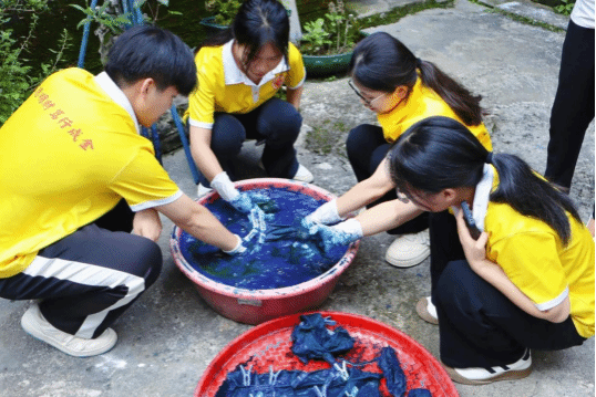 實(shí)踐隊(duì)隊(duì)長姜進(jìn)志說:“親自參與這次藍(lán)染活動(dòng),我深感傳統(tǒng)技藝的魅力和無限可能。從選擇布料、設(shè)計(jì)圖案到扎結(jié)、染色的每一步都充滿挑戰(zhàn)。這次活動(dòng)讓我更加堅(jiān)定地去傳承傳統(tǒng)文化?!?/p>