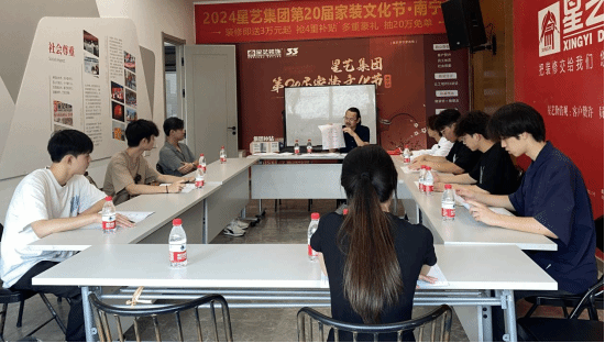 為了培育室內(nèi)設計現(xiàn)場工程師,經(jīng)校內(nèi)選拔,學生自愿參加,我信設學院與廣東星藝裝飾集團股份有限公司南寧集成分公司擬培育一批室內(nèi)設計相關崗位人員。2024年7月5日,骨干教師陳揚代表本院,帶領8名2022級室內(nèi)藝術設計專業(yè)學生前往廣東星藝裝飾集團股份有限公司南寧集成分公司,跟企業(yè)零距離接觸,現(xiàn)場進行筆試、面試,促進學生崗位實習與就業(yè)意向,廣東星藝裝飾集團股份有限公司南寧集成分公司李明總監(jiān)、李夏靈經(jīng)理熱情接待,雙方就深化校企合作與人才培養(yǎng)情況進行座談交流。