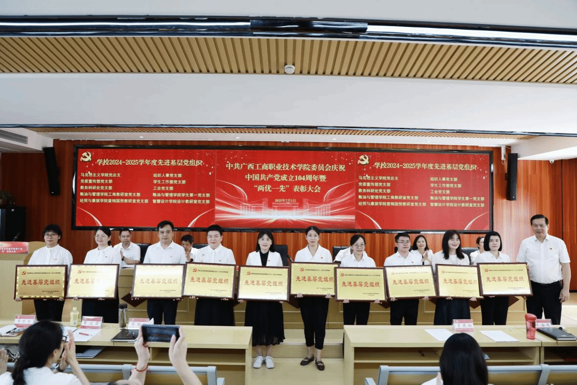 2025 年 7 月 1 日,在這個特殊的日子里,經(jīng)貿(mào)與康旅學(xué)院營銷國貿(mào)教研室被授予廣西工商職業(yè)技術(shù)學(xué)院2024-2025 學(xué)年度“先進基層黨組織”稱號。這一榮譽不僅是對教研室過去一年黨建工作的高度肯定,更是激勵全體成員繼續(xù)前行的強大動力。