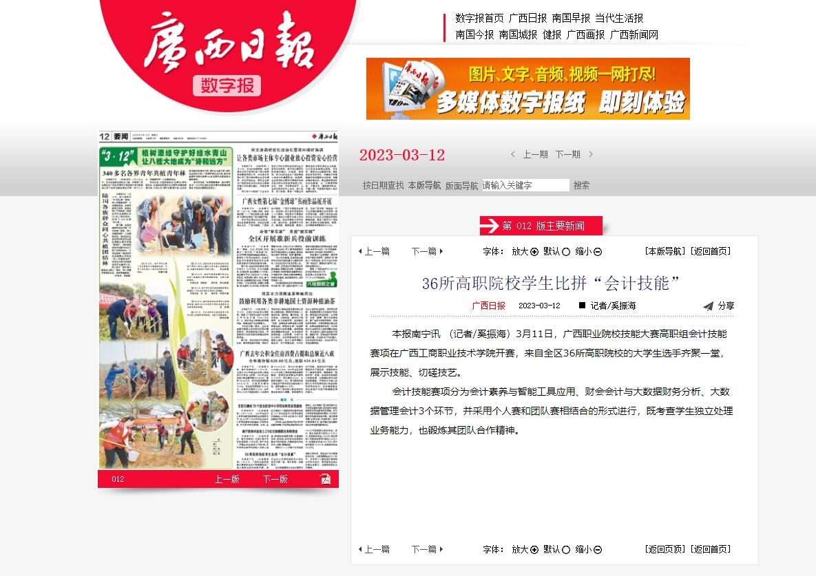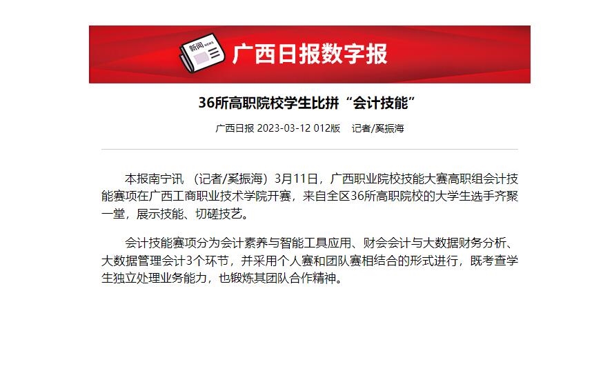 下一條: 【人民日?qǐng)?bào)】廣西職業(yè)院校技能大賽高職組比賽在南寧開(kāi)賽