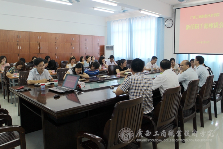 • 2015年7月20日上午,我院在校本部教學(xué)樓2019會議室召開新任職干部座談會,學(xué)院黨委書記覃武云、黨委副書記蒙啟成出席會議,2015年以來新任職的科級以上干部及黨政部門新到崗工作人員共29人參加了會議,黨委組織部...