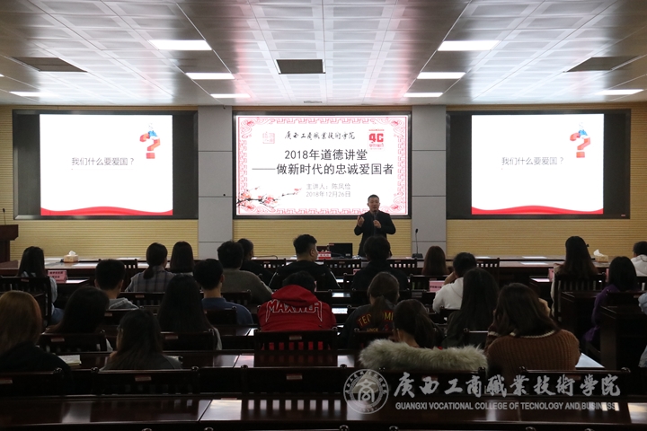 • 2018年12月26日下午,學(xué)院道德講堂于鵬飛校區(qū)2119視頻會(huì)議室舉辦。本次道德講堂由思政部副主任陳鳳儉主講。學(xué)院各社團(tuán)學(xué)生代表以及新聞中心部分成員參加了本次道德講堂。陳鳳儉以“做新時(shí)代的忠誠(chéng)愛(ài)國(guó)者”為主題...