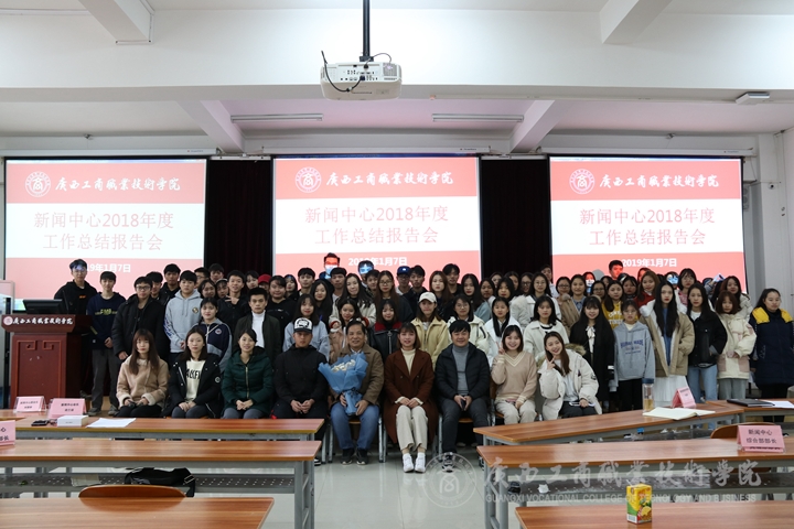 • 2019年1月7日下午,黨委宣傳部新聞中心在鵬飛校區(qū)2145報(bào)告廳召開(kāi)2018年度總結(jié)大會(huì)。黨委宣傳部部長(zhǎng)韋勝?gòu)?qiáng)出席會(huì)議,黨委宣傳部部長(zhǎng)助理陳宇寧、黨委宣傳部老師王衛(wèi)蘭以及新聞中心全體成員參會(huì)。本次會(huì)議由新聞中...