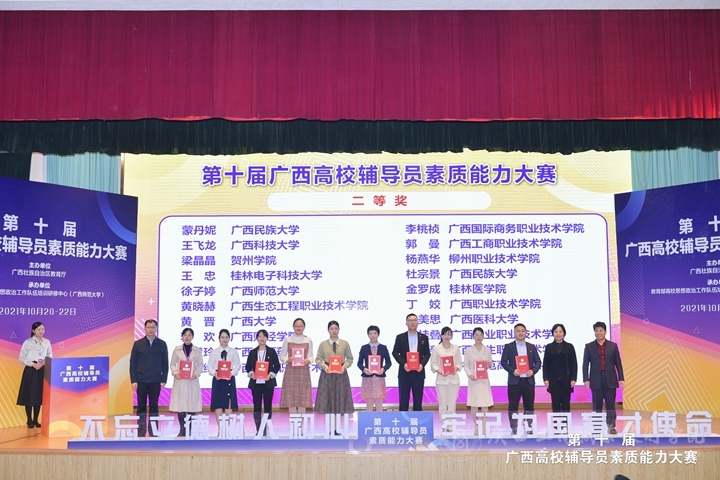 • 10月22日,由自治區(qū)教育廳主辦,教育部高校思想政治工作隊伍培訓(xùn)研修中心(廣西師范大學(xué))承辦的第十屆廣西高校輔導(dǎo)員素質(zhì)能力大賽在廣西師范大學(xué)圓滿落下帷幕。經(jīng)過三天激烈角逐,我校經(jīng)貿(mào)學(xué)院學(xué)生科科長、輔導(dǎo)...