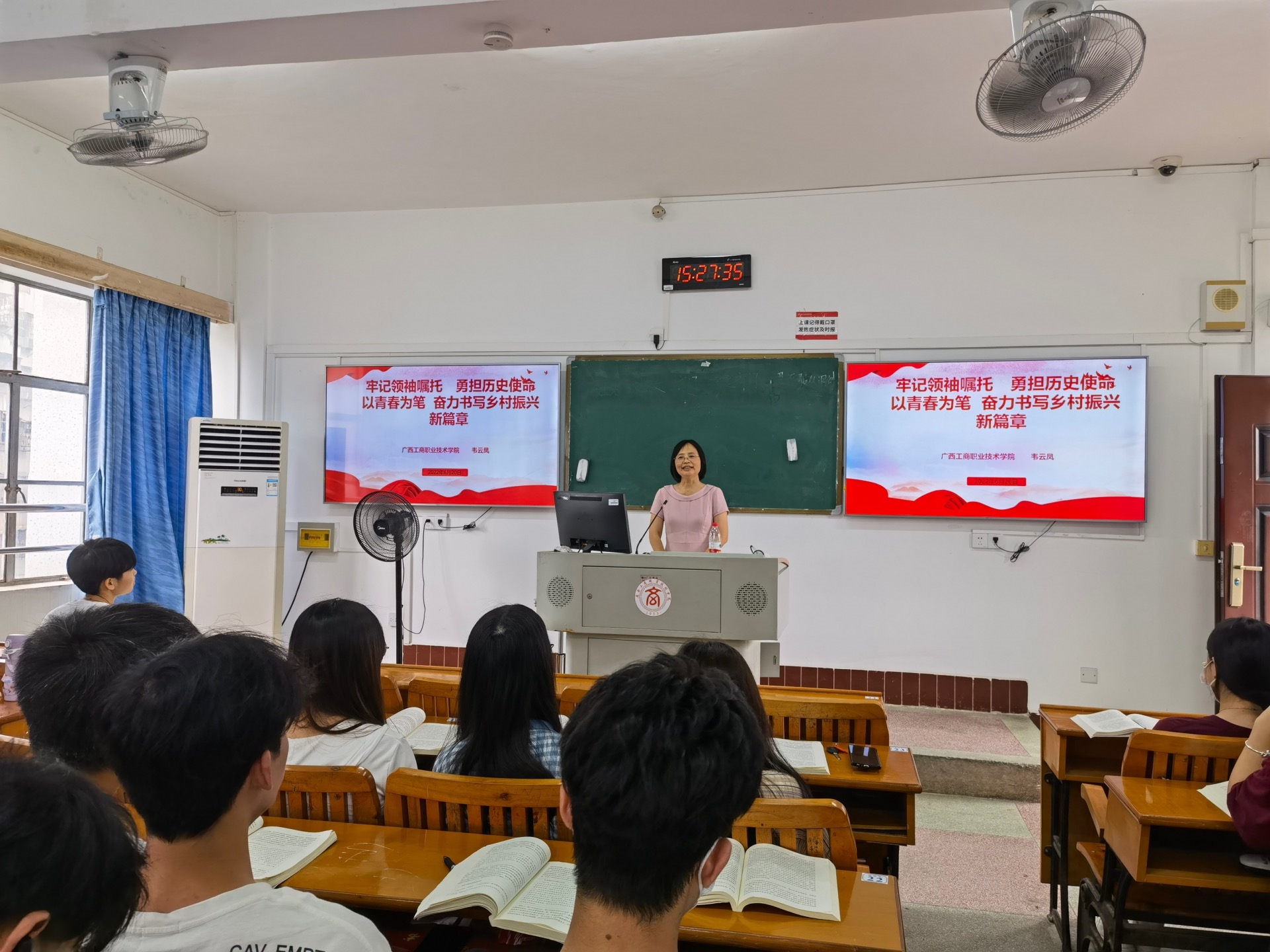 • 6月20日,學院紀委書記韋云鳳來到中堯校區(qū)2教303教室,為電商2110班全體同學講授題為《牢記領袖囑托 勇?lián)鷼v史使命 以青春為筆 奮力書寫鄉(xiāng)村振興新篇章》的思政課。韋書記就“同學們的家鄉(xiāng)來自哪里”為話題展開交...