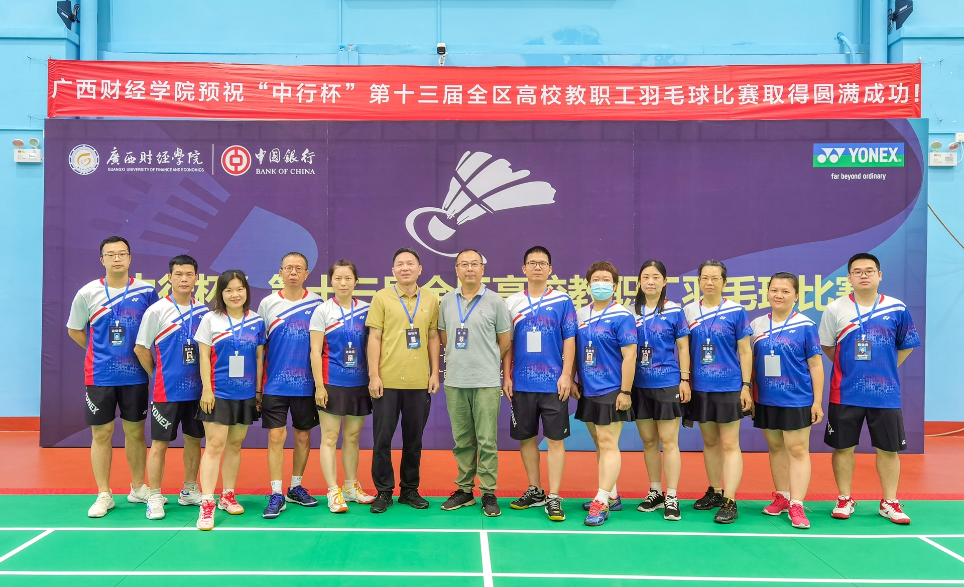 • 6月14日-17日,由自治區(qū)教育廳主辦的“中行杯”第十三屆全區(qū)高校教職工羽毛球比賽在廣西財經學院舉辦。本次比賽全區(qū)共有36個高校的教職工羽毛球隊參賽。學院黨委副書記、工會主席蒙啟成帶隊,我院14名教職工組隊...