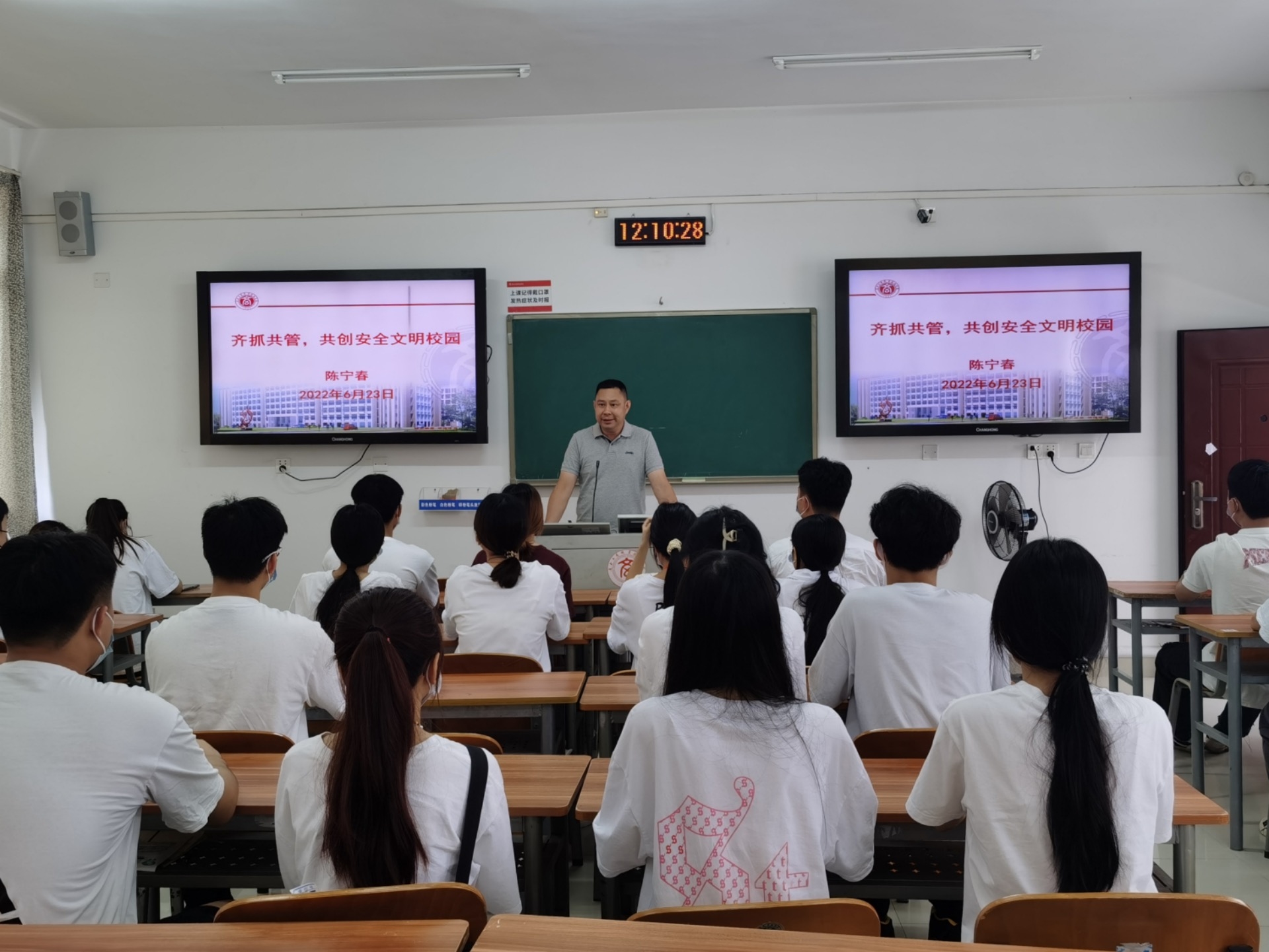 • 6月23日中午,學(xué)院副院長(zhǎng)陳寧春在鵬飛校區(qū)為青年志愿者協(xié)會(huì)學(xué)生講授題為《齊抓共管,共創(chuàng)安全文明校園》的思政課。陳副院長(zhǎng)以“安全重于防范 責(zé)任重于泰山”至理名言導(dǎo)入課程,并結(jié)合學(xué)校安全文明建設(shè)實(shí)際工作,...
