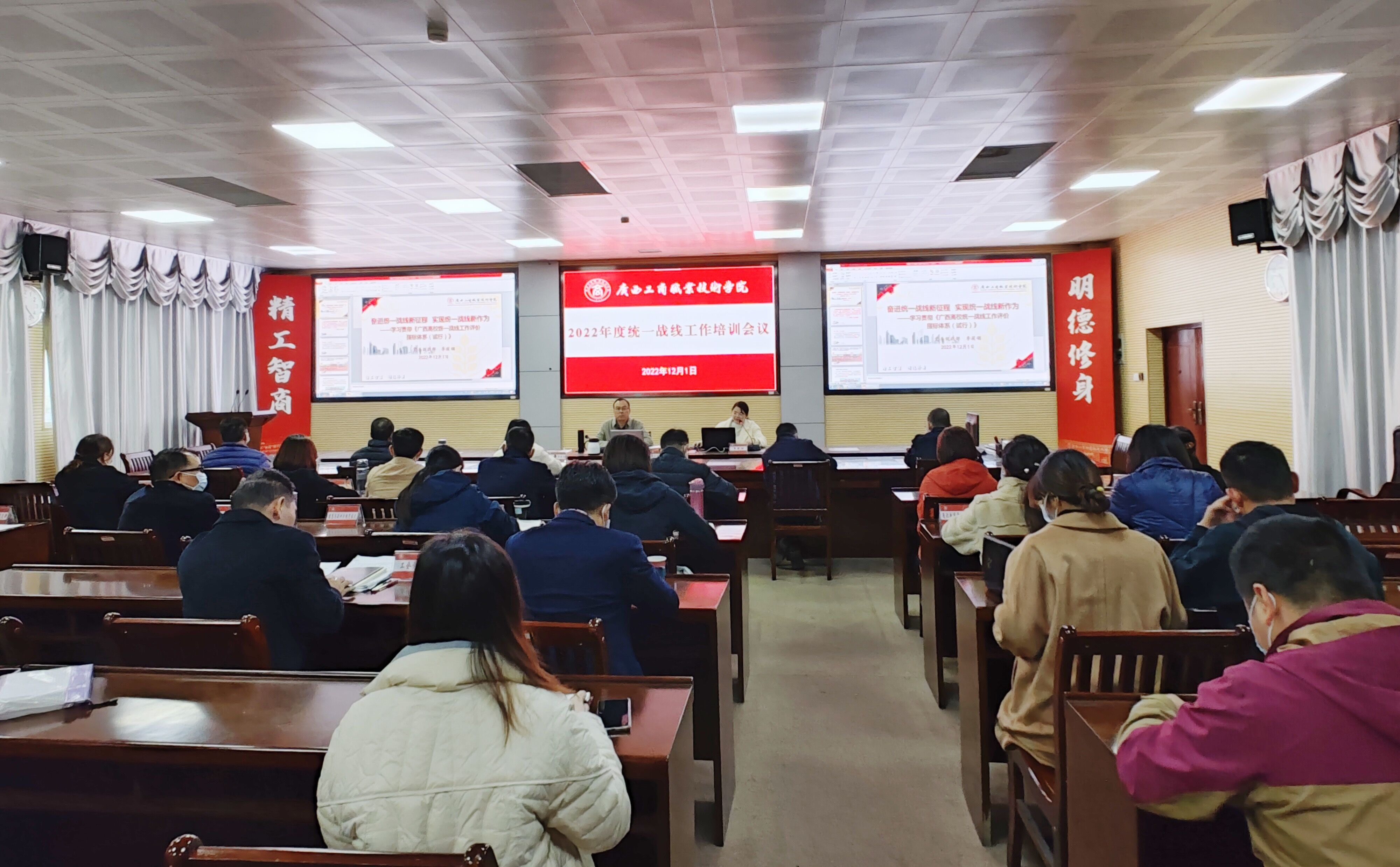 • 為進一步鞏固“大統(tǒng)戰(zhàn)”工作格局,促進學院基層黨組織落實統(tǒng)一戰(zhàn)線工作職責,提升統(tǒng)戰(zhàn)干部能力素質,我院于12月1日上午在鵬飛校區(qū)教學樓2119視頻會議室召開2022年度學院統(tǒng)一戰(zhàn)線工作培訓會議。學院黨委副書記蒙啟...