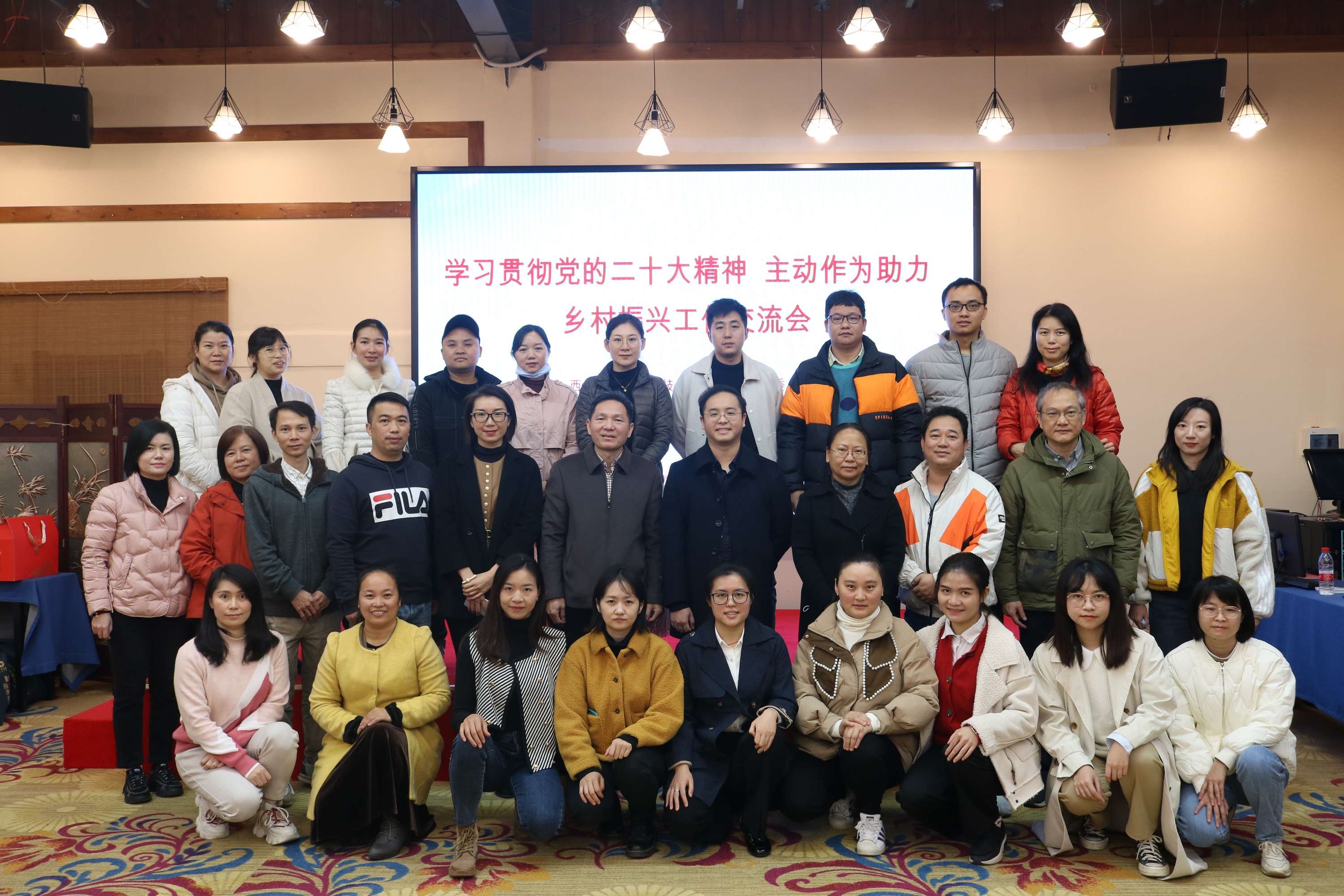 • 2022年12月9日,學(xué)院工會(huì)聯(lián)合廣西農(nóng)村投資集團(tuán)一另一七農(nóng)產(chǎn)供應(yīng)鏈有限公司開(kāi)展“學(xué)習(xí)貫徹黨的二十大精神 主動(dòng)作為助力鄉(xiāng)村振興”工作交流活動(dòng)。工會(huì)干部、教代會(huì)代表、教師代表近60人參加活動(dòng)。(與會(huì)人員合影)...