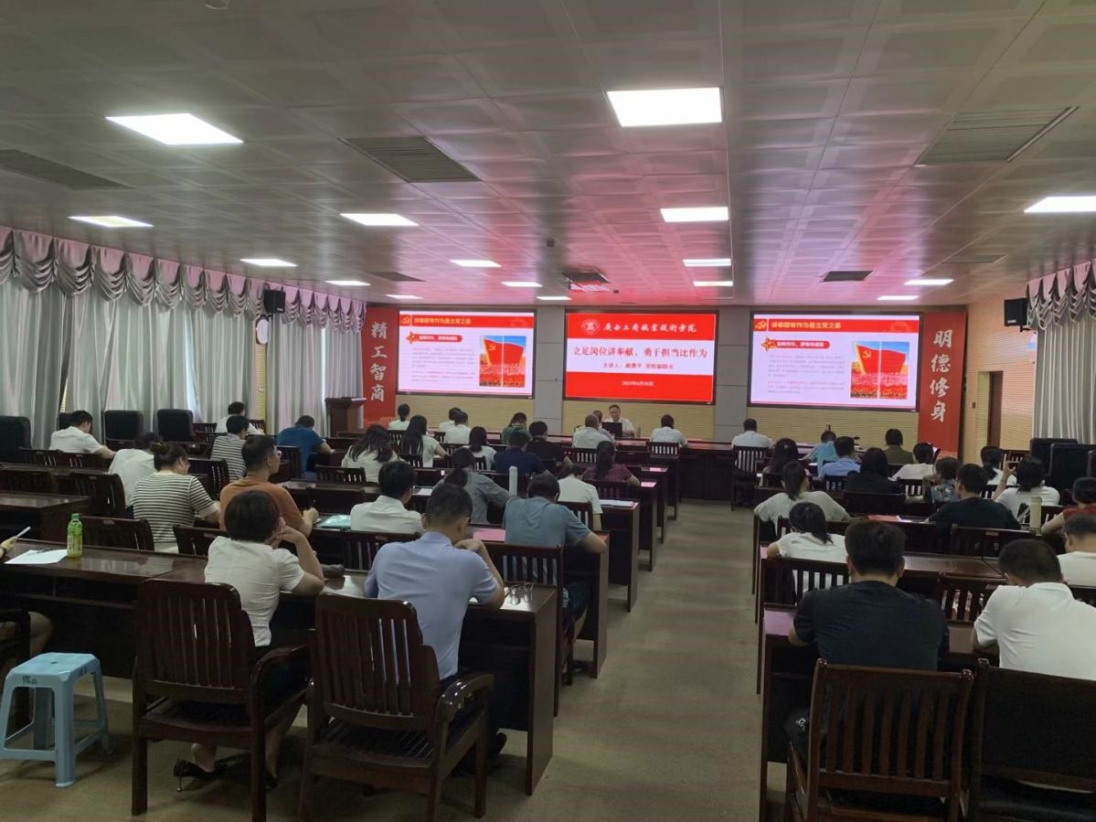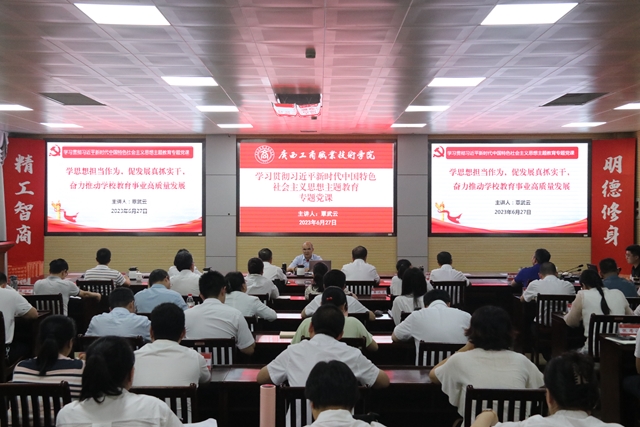 • 為深入開展學(xué)習(xí)貫徹習(xí)近平新時(shí)代中國特色社會(huì)主義思想主題教育,6月27日下午,學(xué)院黨委書記覃武云以“學(xué)思想擔(dān)當(dāng)作為,促發(fā)展真抓實(shí)干,奮力推動(dòng)學(xué)校教育事業(yè)高質(zhì)量”為題講授專題黨課。自治區(qū)黨委第十二巡回指導(dǎo)...