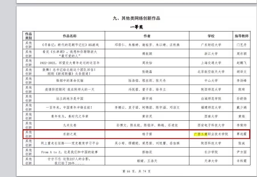• 根據(jù)教育部思想政治工作司、中央網(wǎng)信辦網(wǎng)絡(luò)社會(huì)工作局公布的第六屆“全國大學(xué)生網(wǎng)絡(luò)文化節(jié)”和“全國高校網(wǎng)絡(luò)教育優(yōu)秀作品推選展示活動(dòng)”遴選結(jié)果,我院報(bào)送的作品榮獲第六屆全國大學(xué)生網(wǎng)絡(luò)文化節(jié)其他類網(wǎng)絡(luò)創(chuàng)新...
