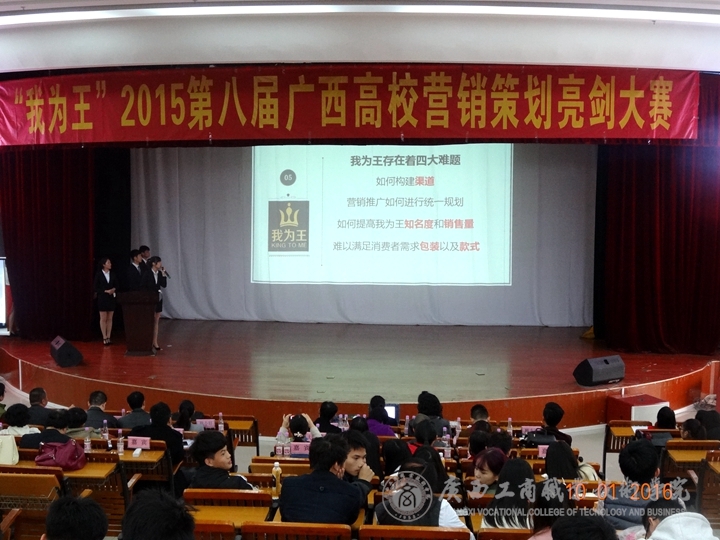 • 2016年1月10日13時,由中國市場營銷課程標(biāo)準(zhǔn)開發(fā)中心廣西分中心主辦,廣西南寧奧理可贏企業(yè)管理咨詢有限公司承辦、廣西太常服飾有限公司贊助的“我為王”2015第八屆高校營銷策劃亮劍總決賽在廣西財經(jīng)學(xué)院舉行。我...