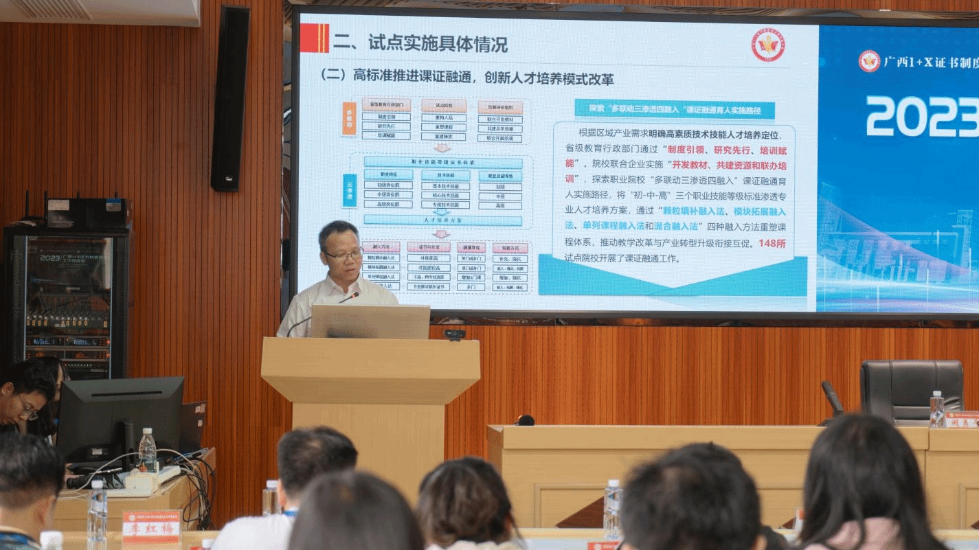 • 10月20日,由廣西1+X證書(shū)制度試點(diǎn)建設(shè)秘書(shū)處主辦、廣西工商職業(yè)技術(shù)學(xué)院承辦的2023廣西1+X證書(shū)制度試點(diǎn)工作推進(jìn)會(huì)在學(xué)院鵬飛校區(qū)成功召開(kāi)。自治區(qū)教育廳職業(yè)教育與成人教育處副處長(zhǎng)王卓,廣西工商職業(yè)技術(shù)學(xué)院院...