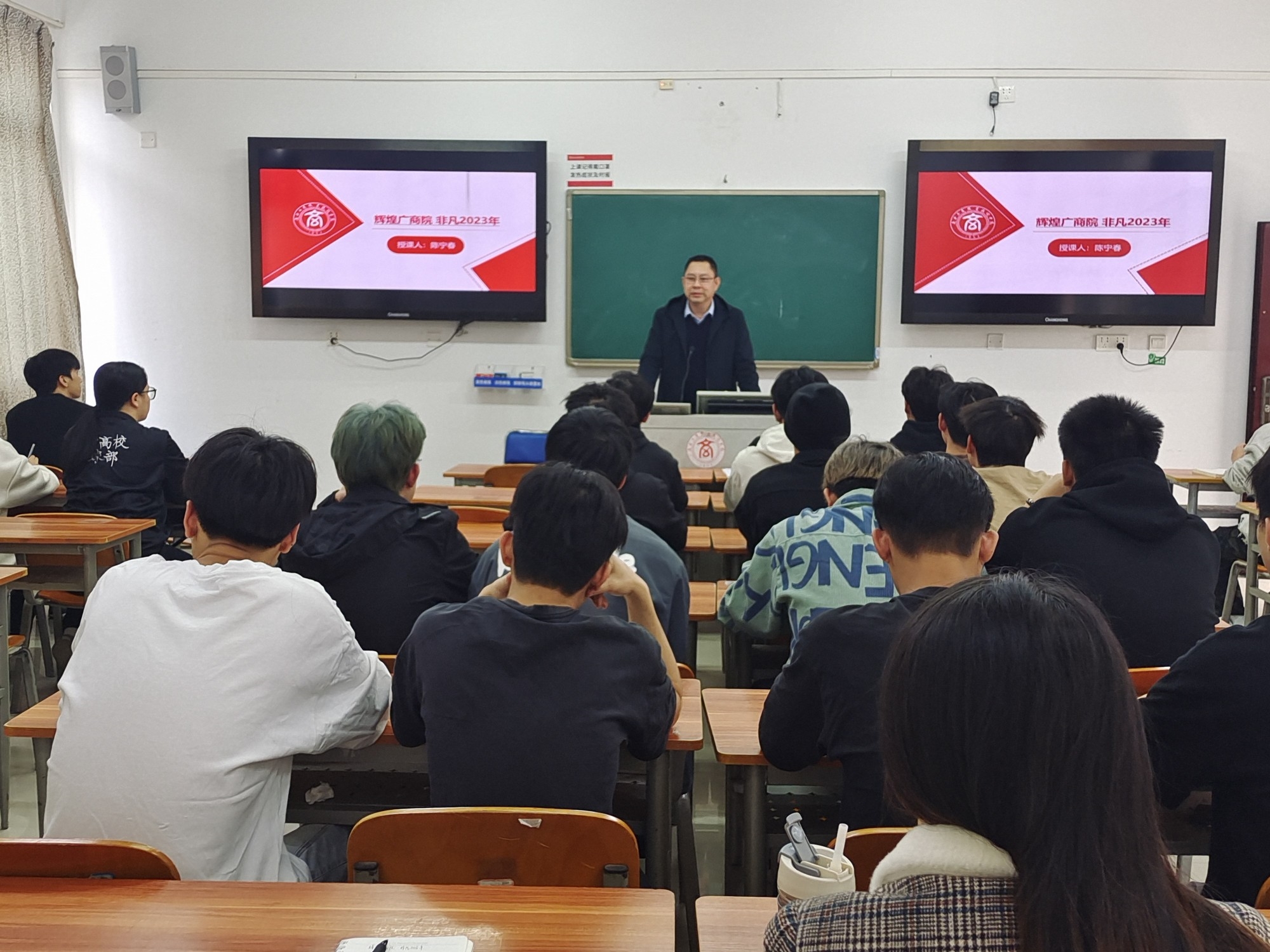 • 2024年1月3日下午,學院副院長陳寧春深入課堂,為室內2314班的學生講授題為《輝煌廣商院 非凡2023年》的專題思想政治理論課。馬克思主義學院部分教師現(xiàn)場聽課學習。(授課現(xiàn)場)課堂上,陳寧春副院長和同學們一起...