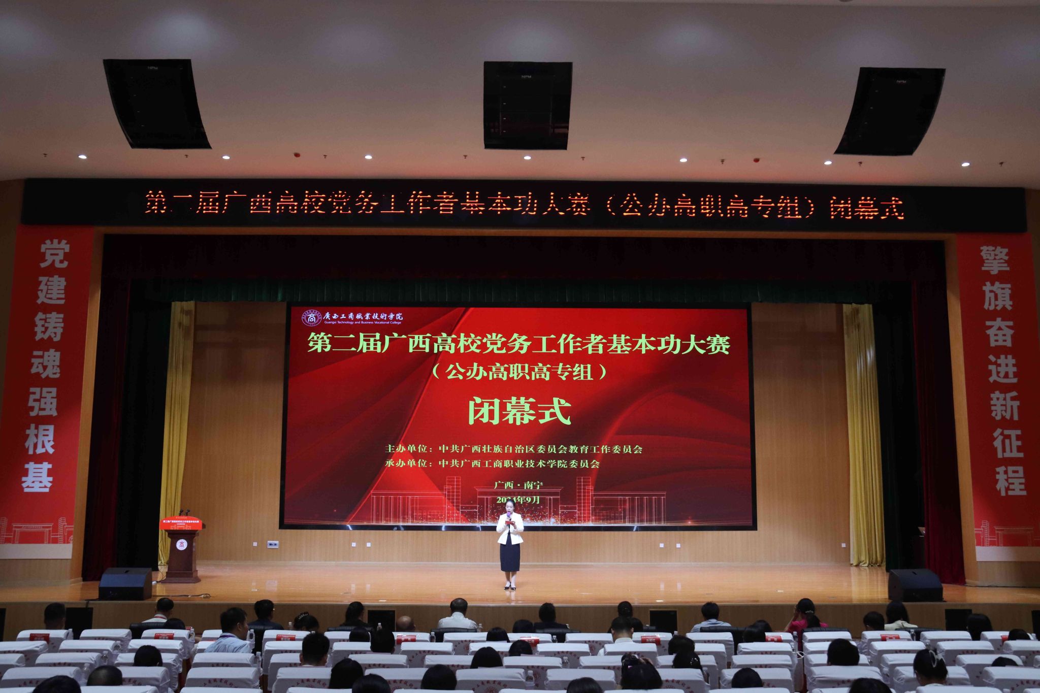 • 9月19日至20日,第二屆廣西高校黨務(wù)工作者基本功大賽(公辦高職高專組)比賽在我校武鳴校區(qū)舉行。我校選派的馬克思主義學(xué)院教師覃田、經(jīng)貿(mào)學(xué)院教師梁莉莉、管理學(xué)院教師楊淑英三位老師分別榮獲教師黨支部書記組、...