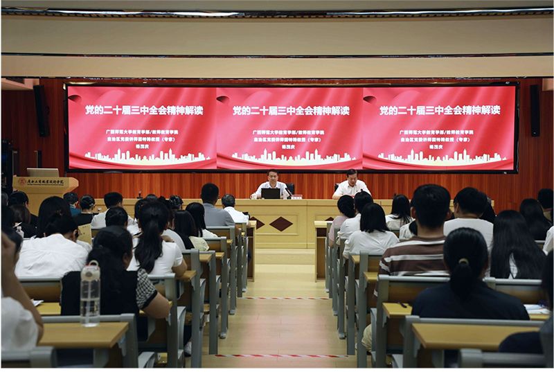 • 9月20日,自治區(qū)黨委講師團(tuán)特聘教授(專家)、廣西師范大學(xué)教師教育學(xué)院院長(zhǎng)、教育學(xué)部副部長(zhǎng)、教授楊茂慶到我校開展學(xué)習(xí)貫徹黨的二十屆三中全會(huì)精神宣講活動(dòng)。全體學(xué)校領(lǐng)導(dǎo),學(xué)校全體中層干部,學(xué)校各黨總支、各...